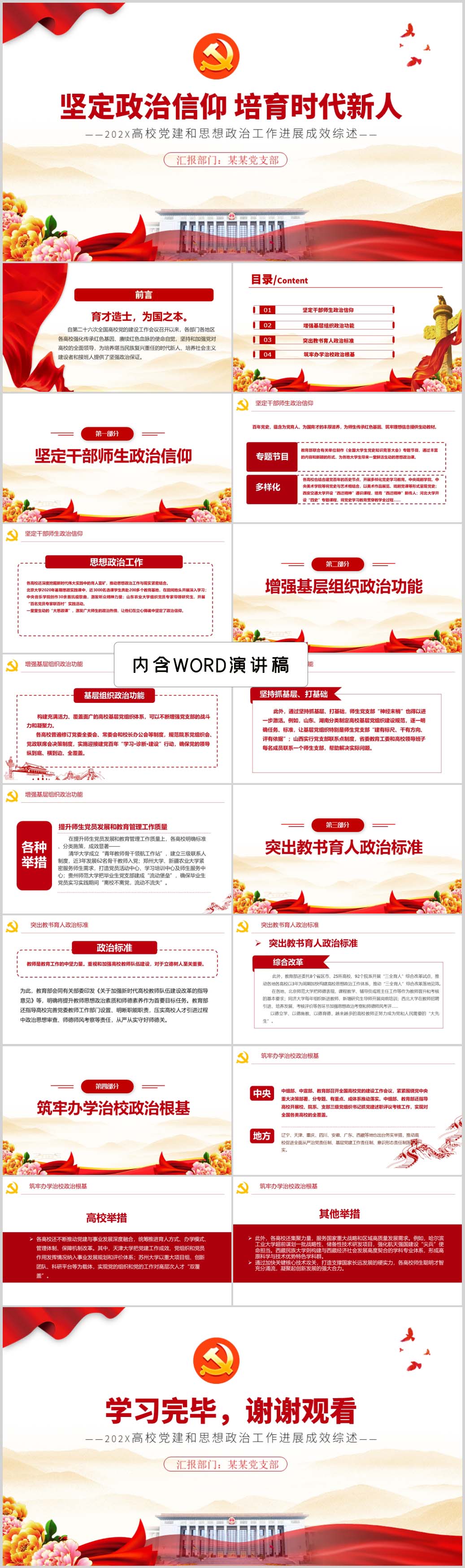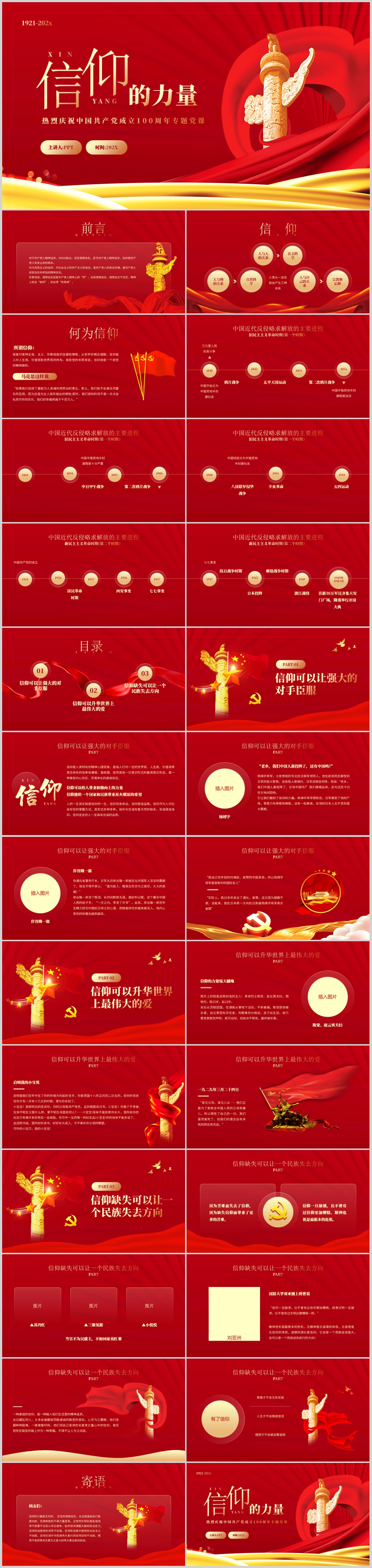 坚定政治信仰传承红色基因培育时代新人党课PPT模板(内含WORD演讲稿)