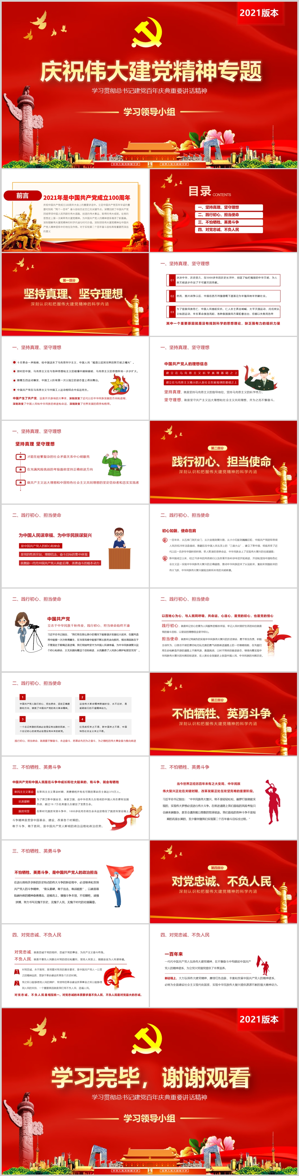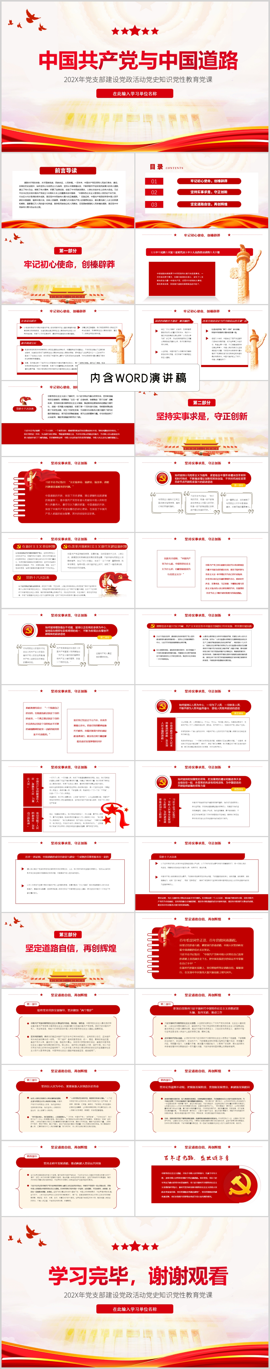 党支部建设活动党史知识党性教育党课PPT模板(内含WORD演讲稿)