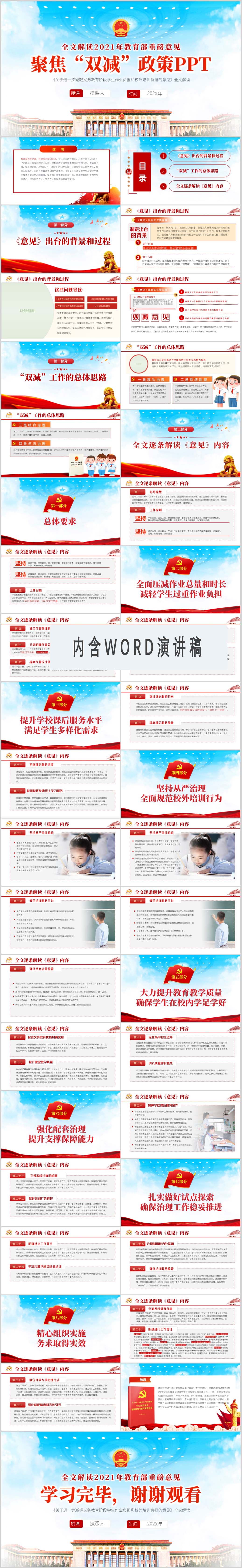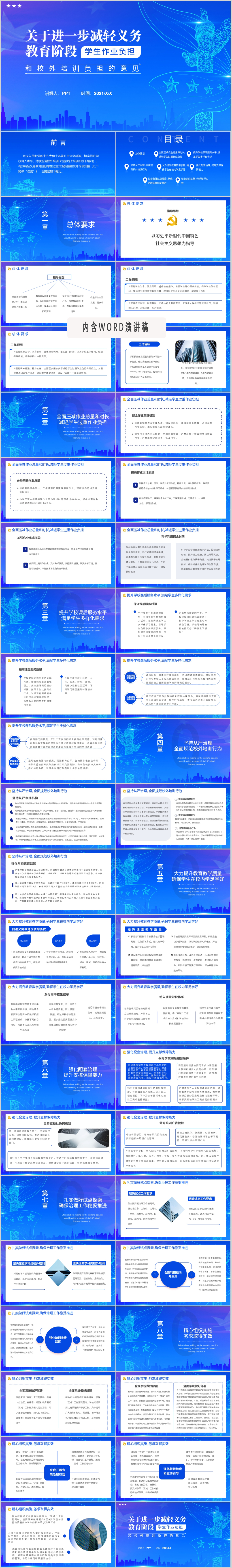 教育部双减培训机构学校小学教育教师政策党课ppt模板(内含WORD演讲稿)