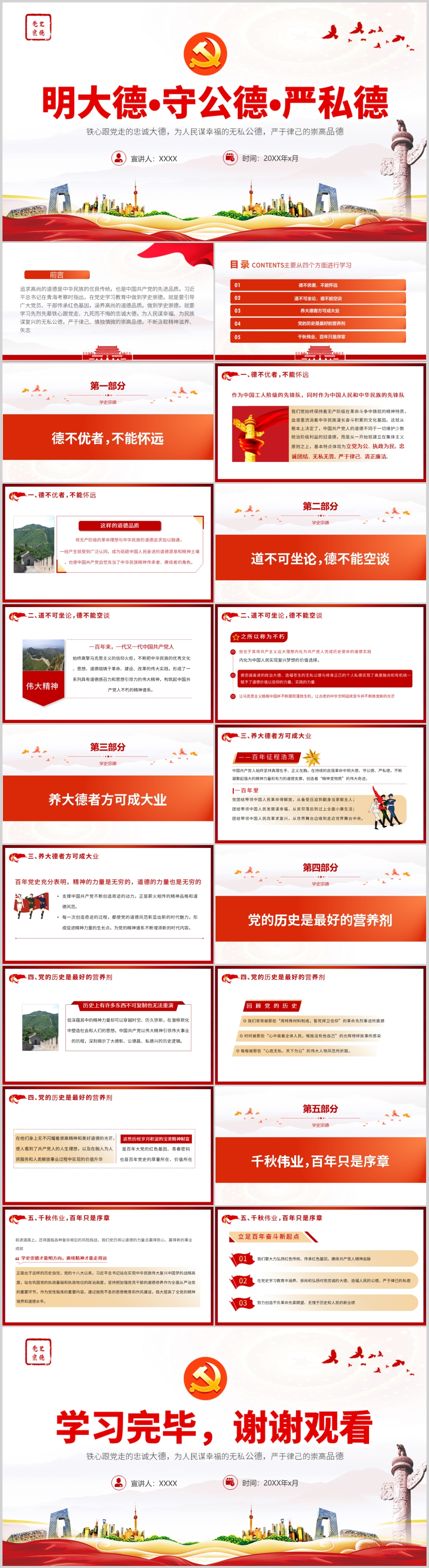 学党史守公德严私德廉政教育党课专题ppt模板