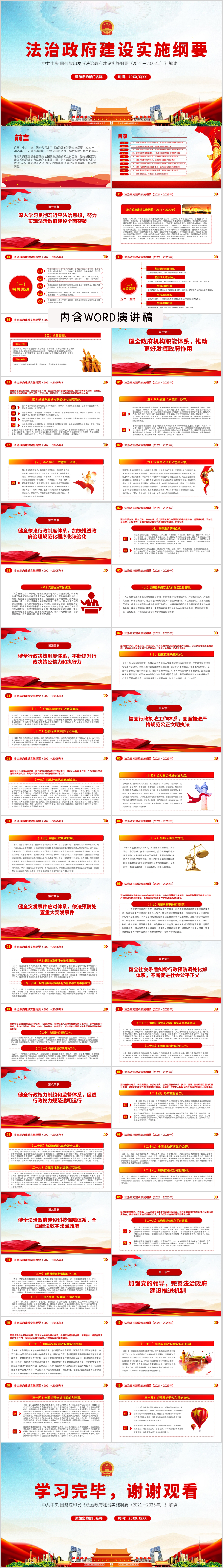 2021法治政府建设实施纲要法治法规政策党课PPT模板(内含WORD演讲稿)