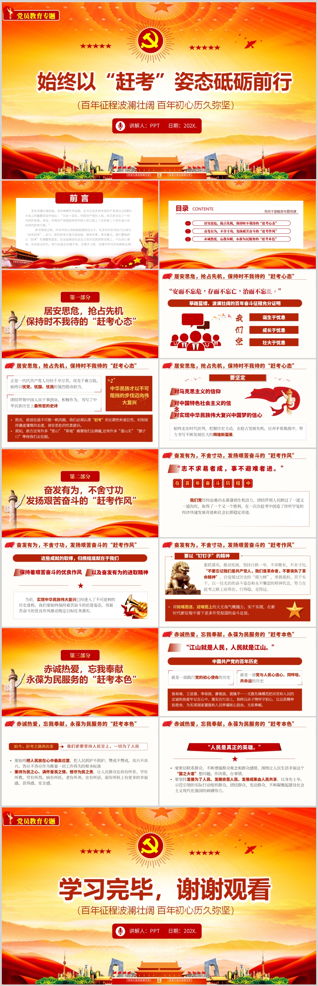 百年征程波澜壮阔百年初心历久弥坚始终以“赶考”姿态砥砺前行党课PPT模板(
