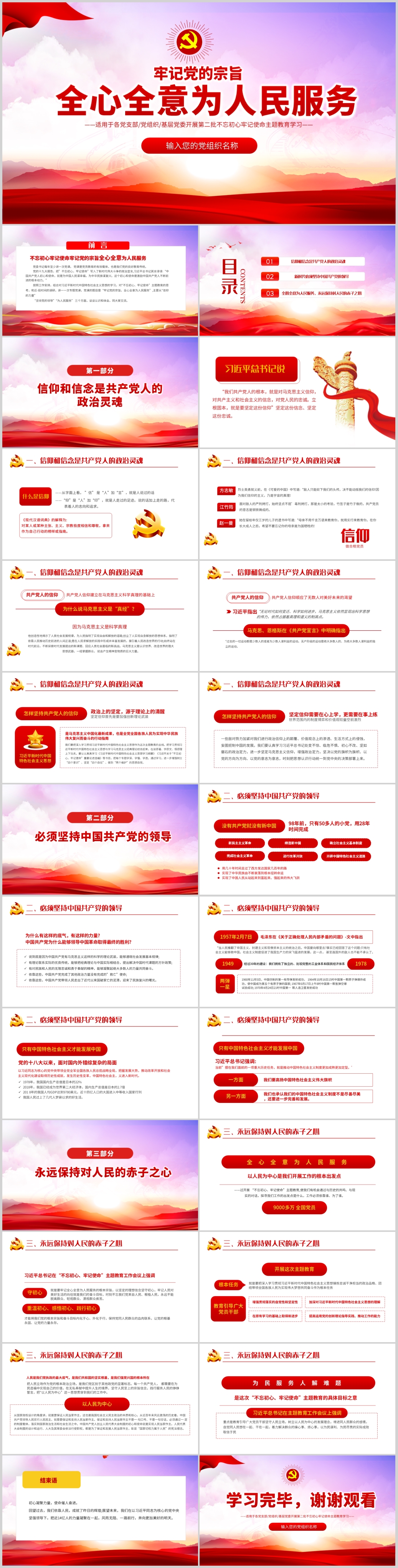 学习不忘初心牢记党的宗旨全心全意为人民服务党课PPT模板