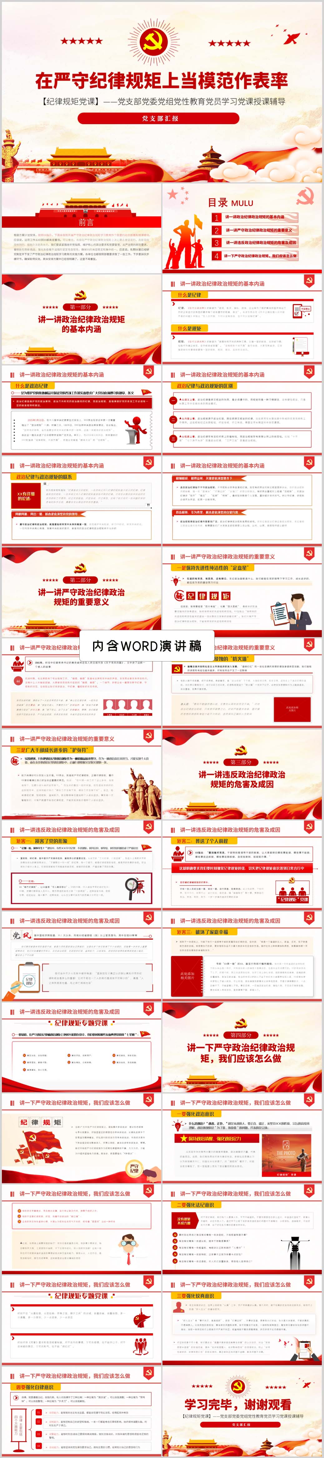 严守政治纪律政治规矩学习纪律规矩党课PPT模板(内含WORD演讲稿)