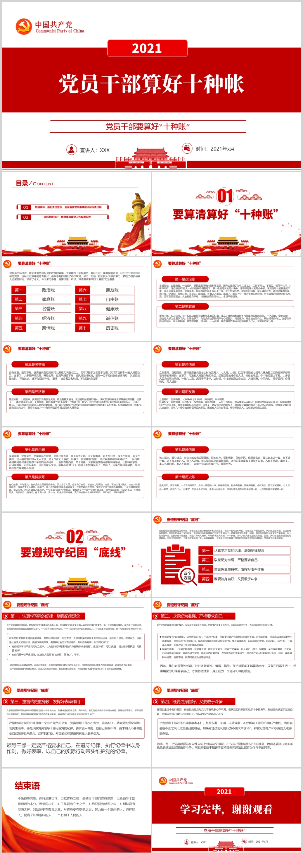 基层党组织党支部党员干部要算好“十种账”廉政党课PPT模板
