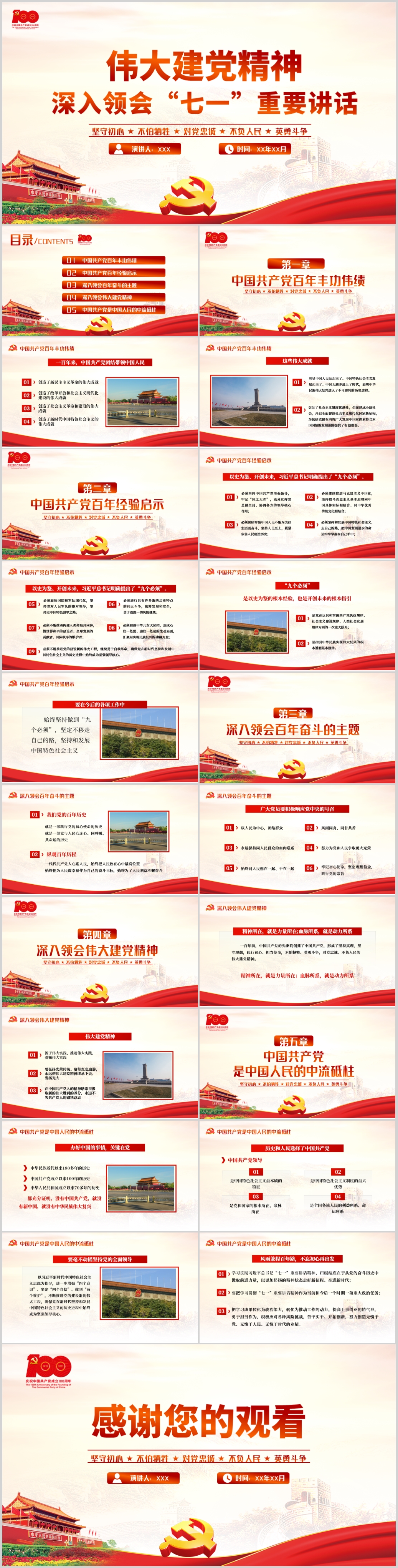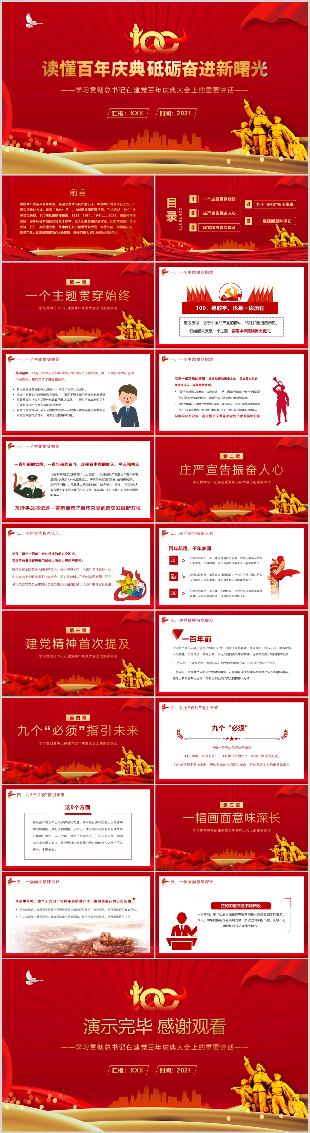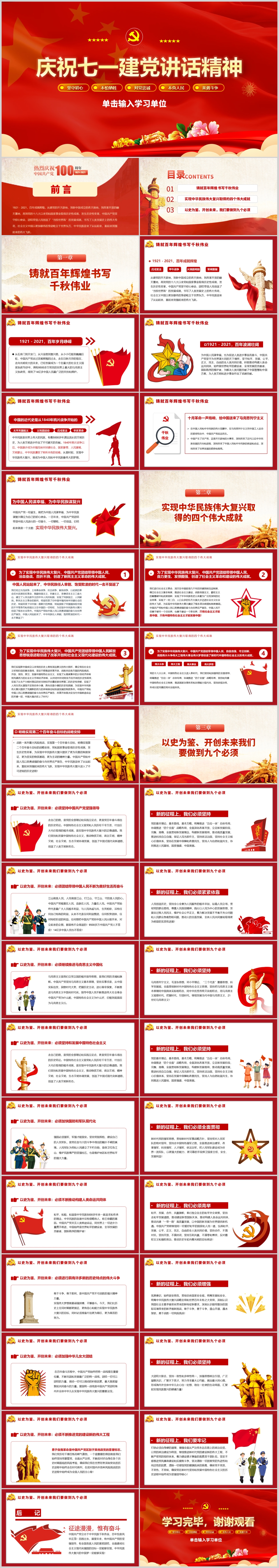 2021七一建党节铸就百年辉煌100周年大会讲话精神解读PPT模板(内含WORD演讲稿)