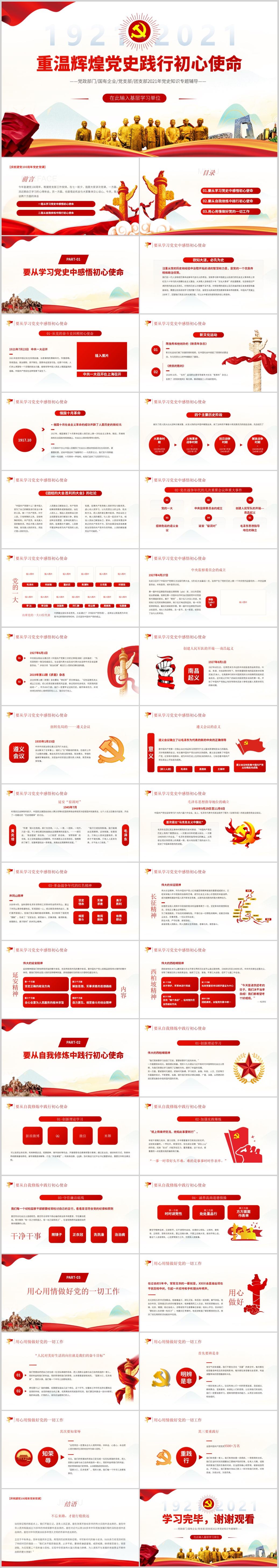 七一建党100周年重温辉煌党史践行初心使命党课PPT模板