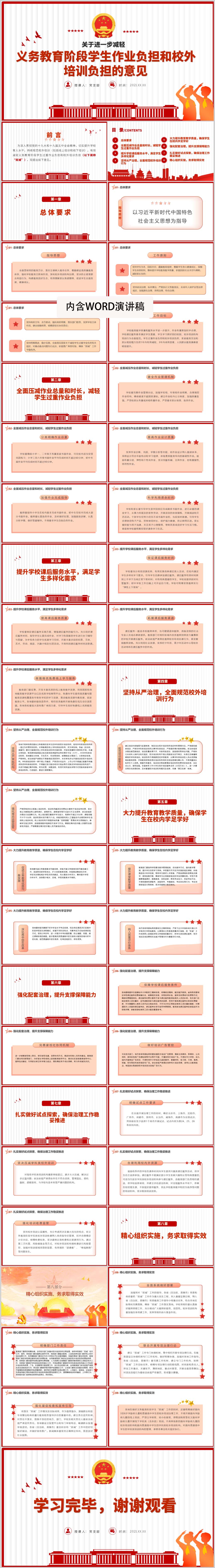 关于进一步双减轻义务教育阶段学生负担的意见解读党课PPT模板