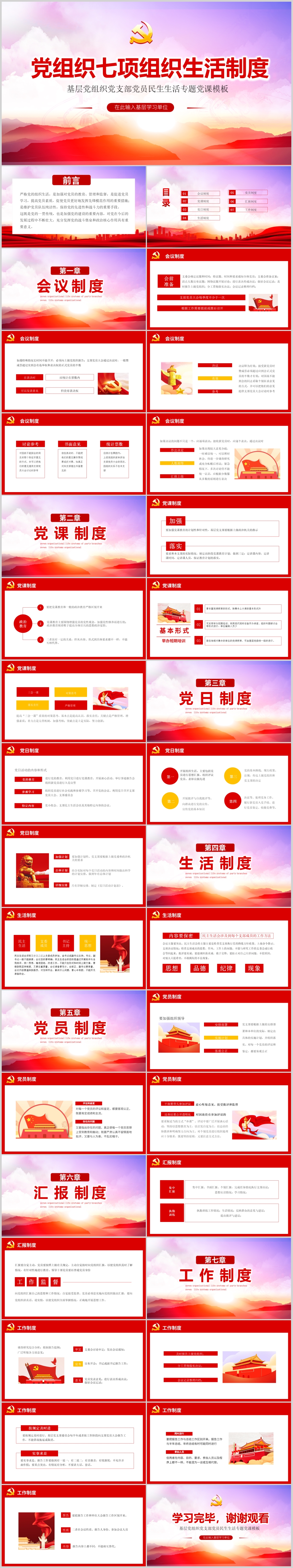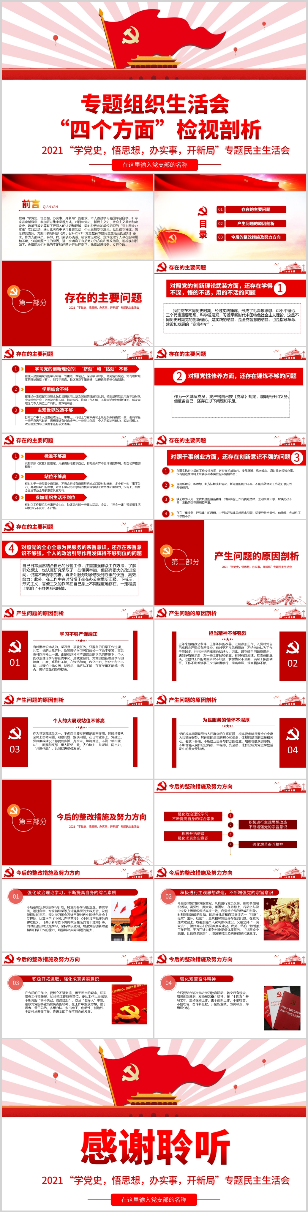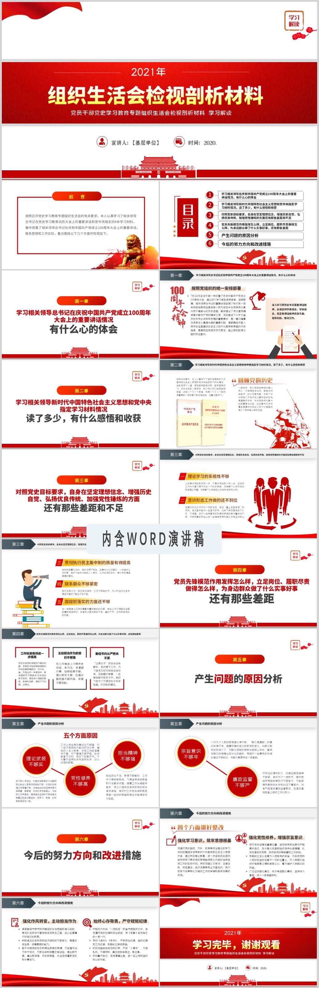 学习党员干部党史学习教育组织生活会检视剖析党课ppt模板(内含WORD演讲稿)