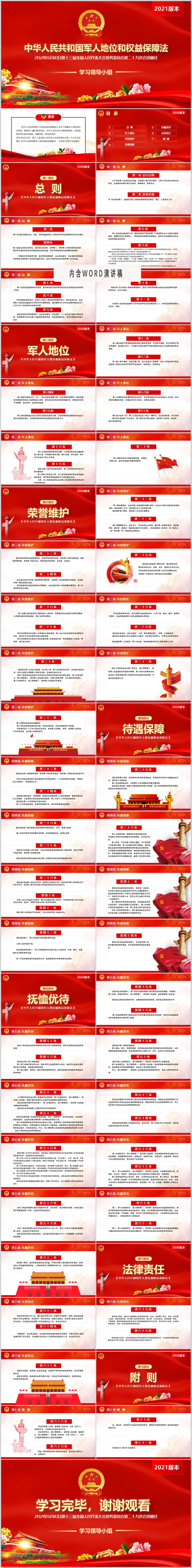 2021年中华人民共和国军人地位和权益保障法学习解读PPT模板(内含WORD演讲稿)
