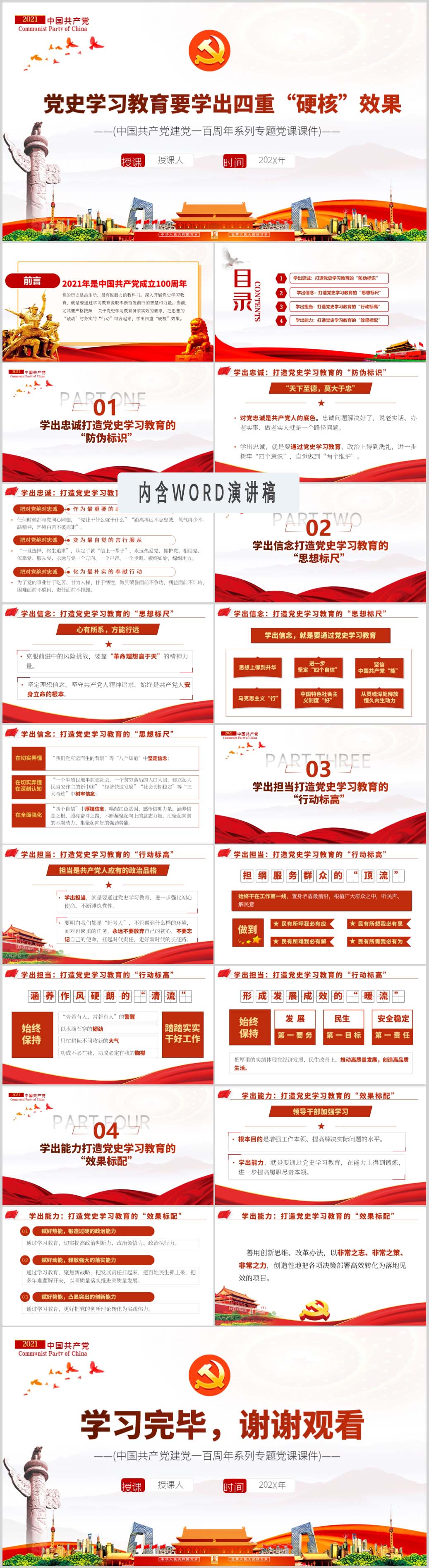 学习党史教育要学出四重“硬核”效果党课PPT模板(内含WORD演讲稿)