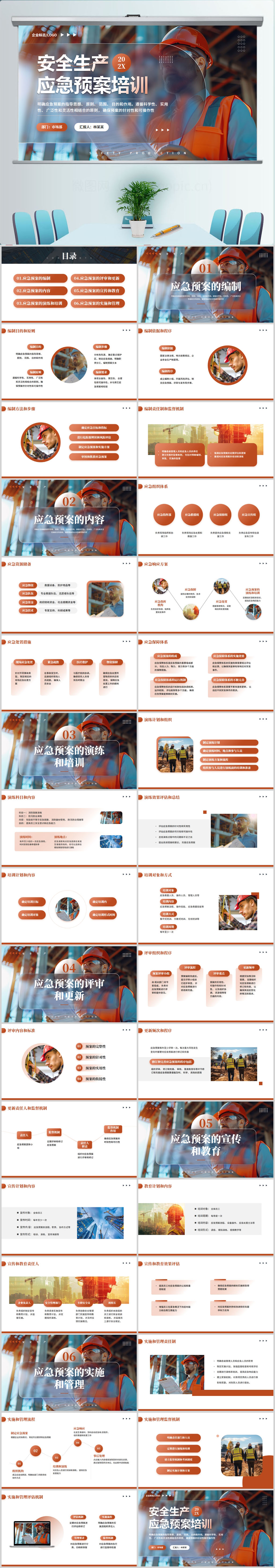 安全生产应急预案上半年年中总结汇报述职红色PPT模版设计