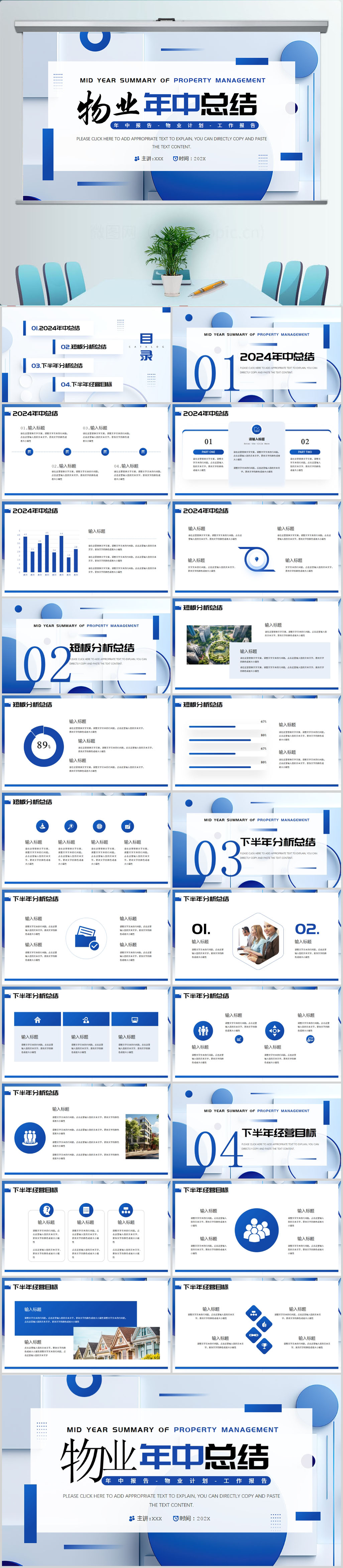 蓝色商务简约物业年终总结PPT模板设计