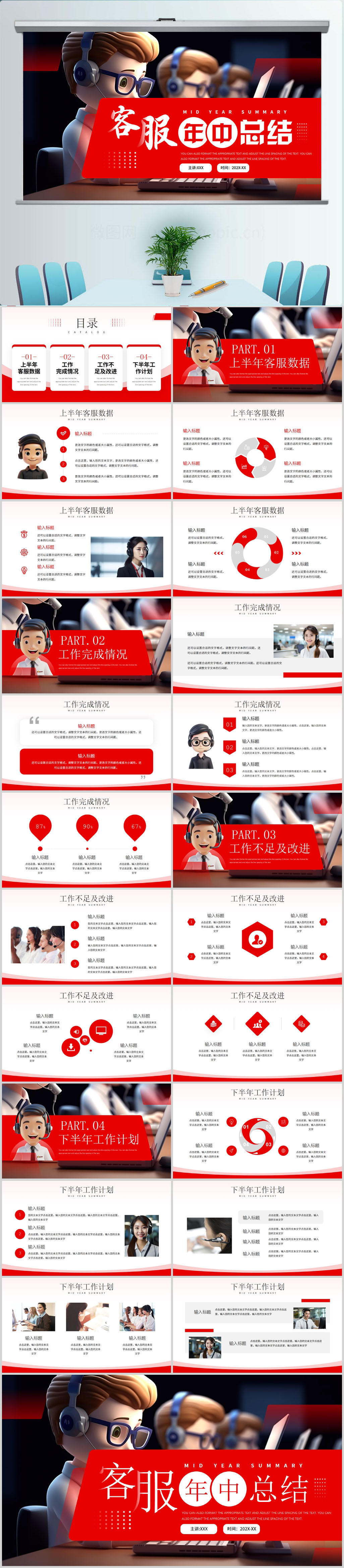 简约大方客户服务部年终总结汇报商务通用PPT模版设计