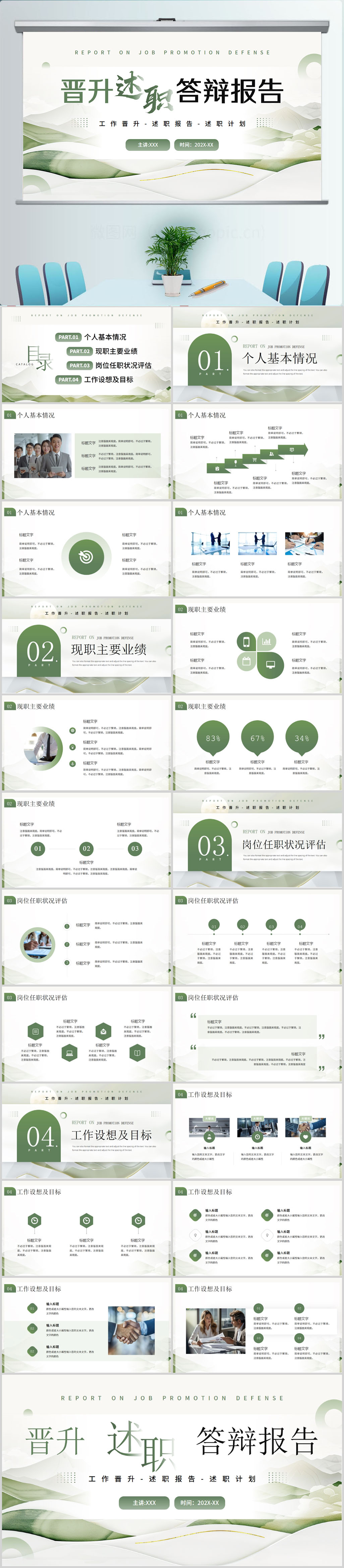 员工个人述职工作转正晋升报告PPT模版设计