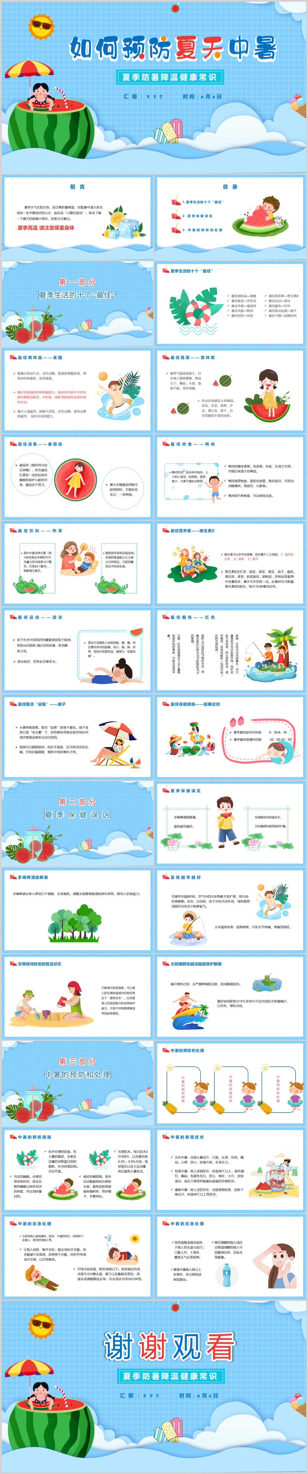 夏季如何预防中暑降温健康知识班会主题课件PPT模板