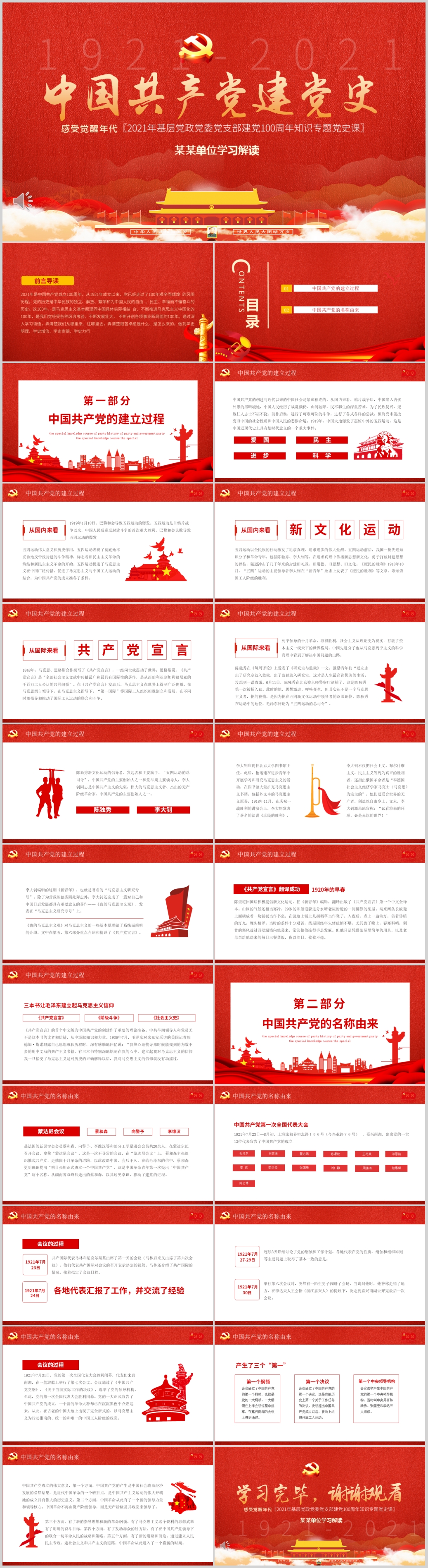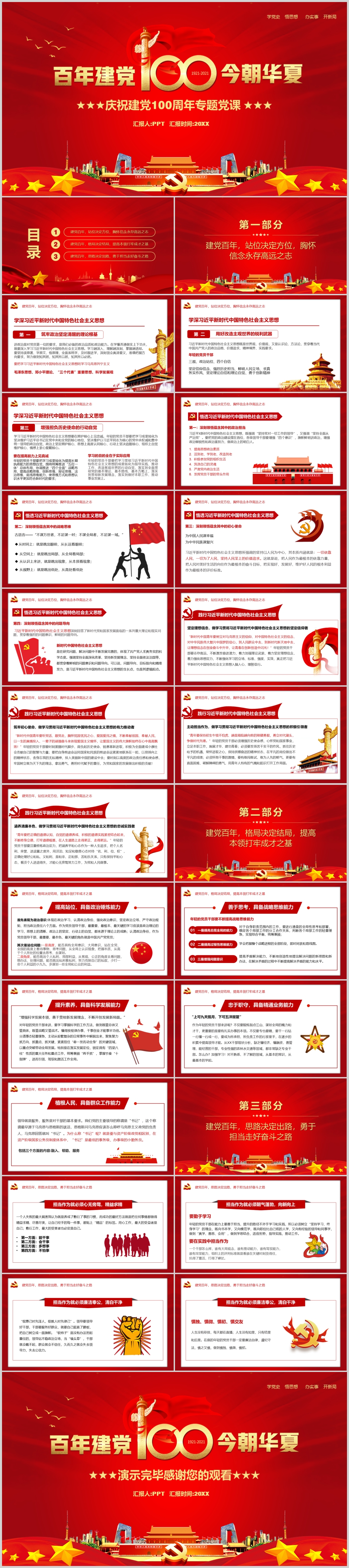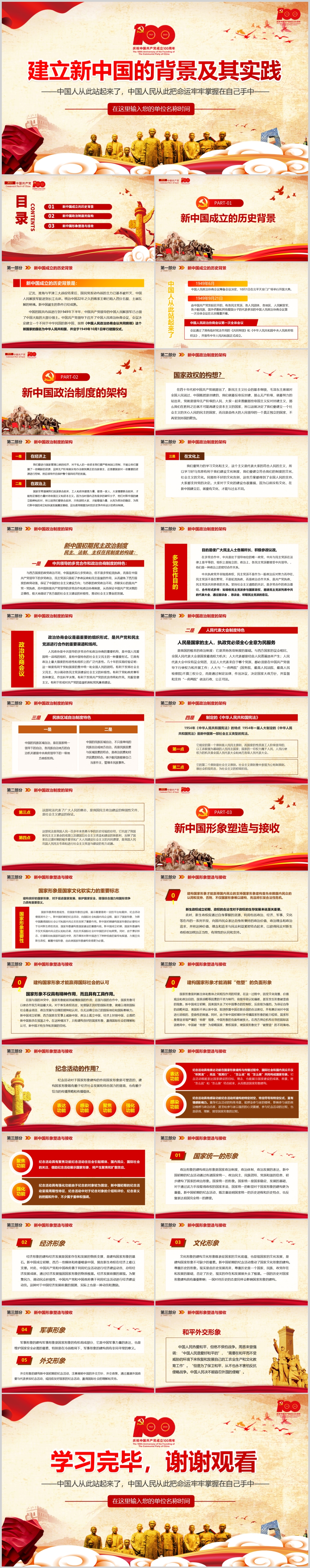 从百年党史看党的独特优势党课PPT模板(内含WORD演讲稿)
