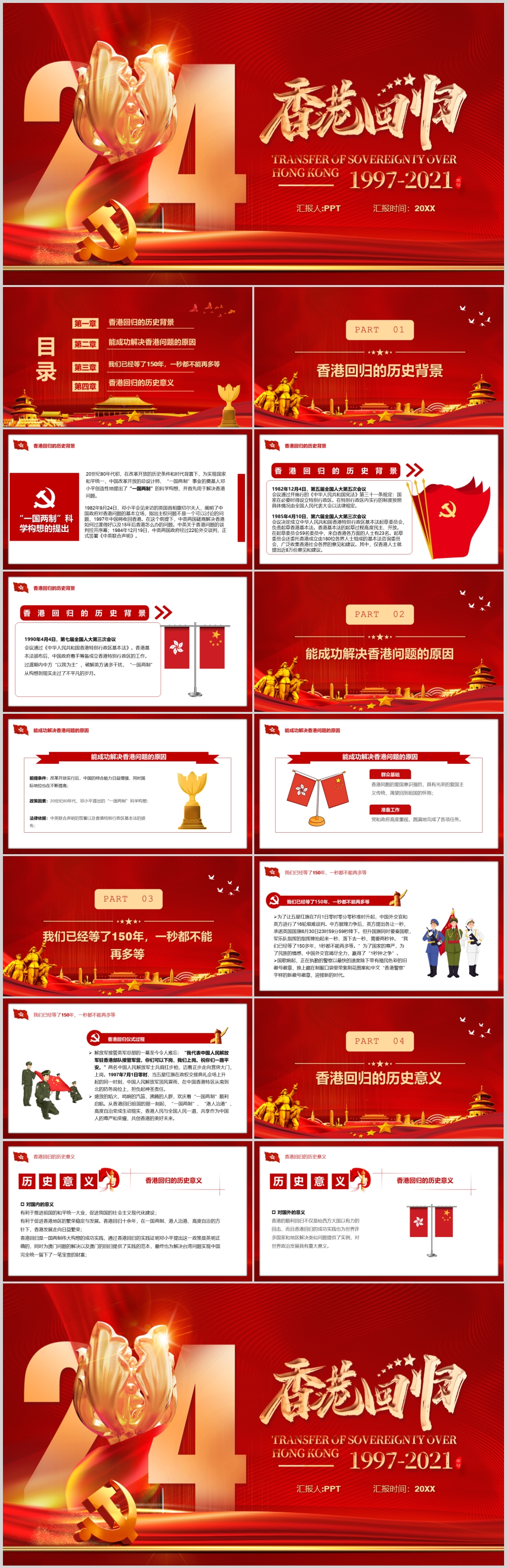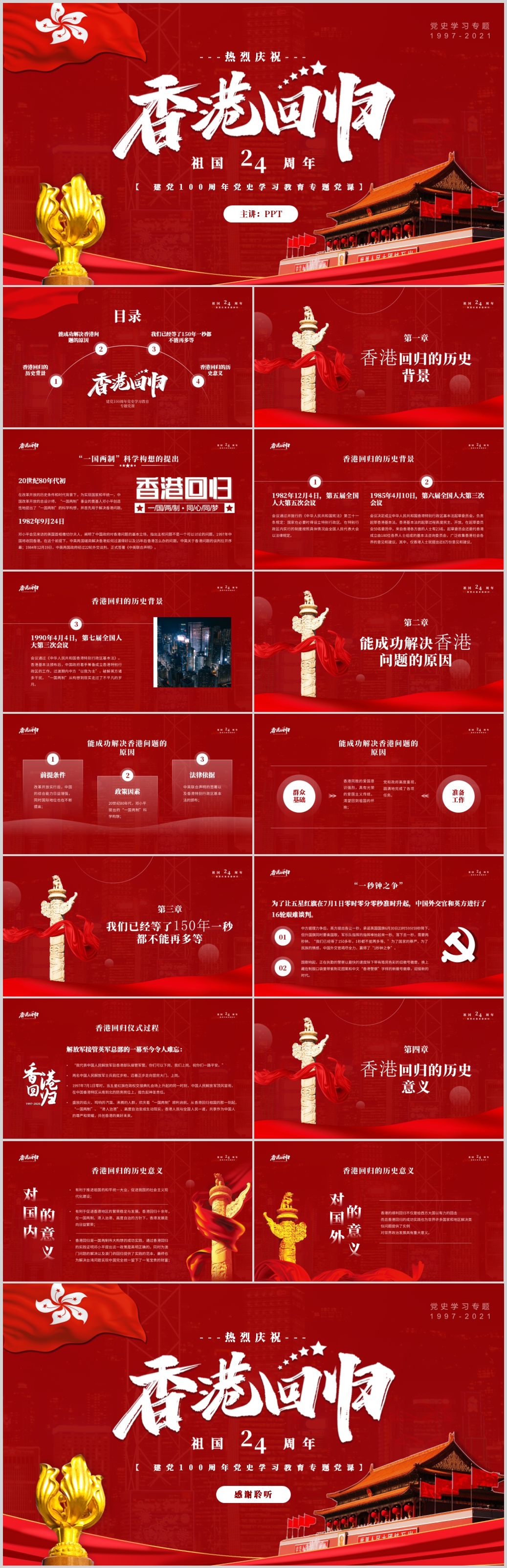 红色香港回归24周年党课ppt模板