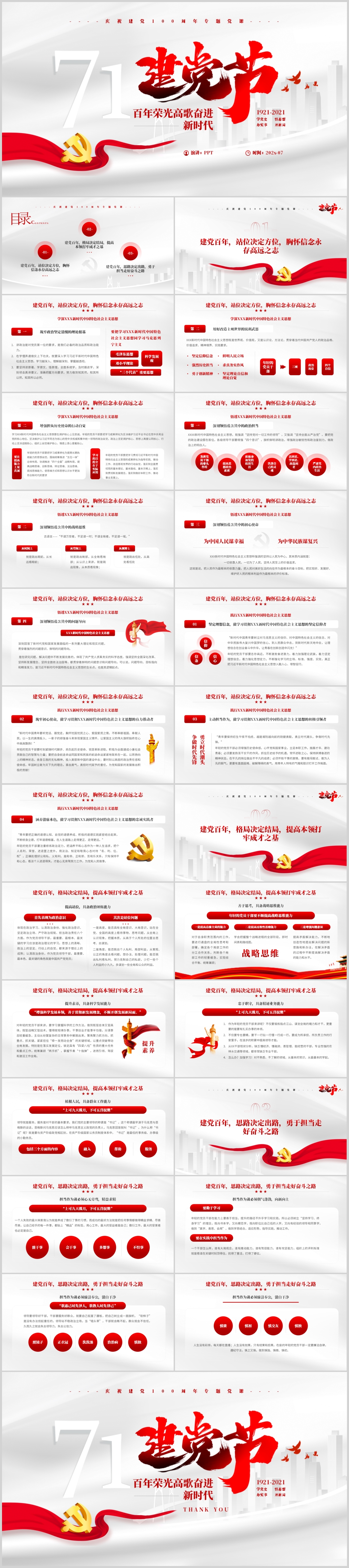 七一建党100周年勇于担当走好奋斗之路专题党课PPT模板