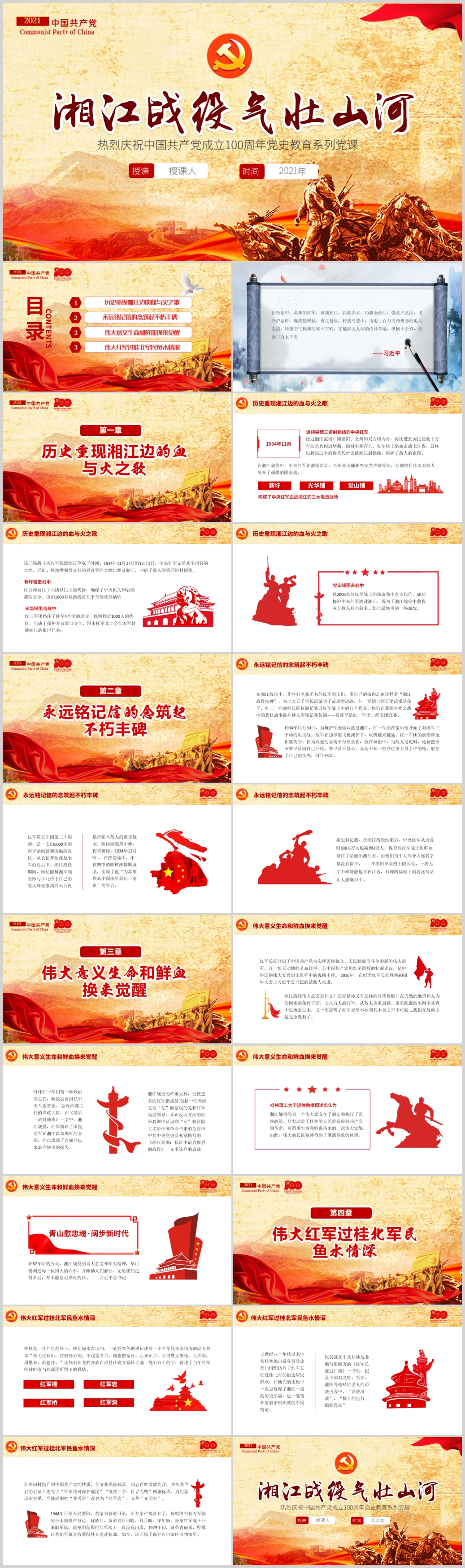 七一建党史湘江战役党史学习教育系列党课PPT模板