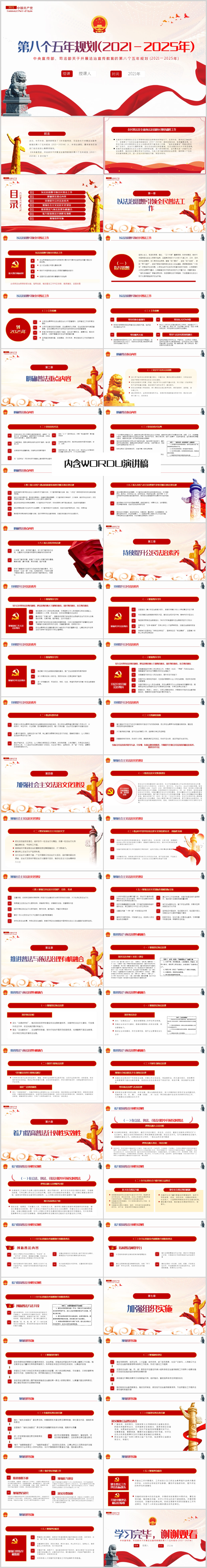 关于开展法治宣传教育的第八个五年规划(2021-2025年)解读PPT模板(内含WORD演讲