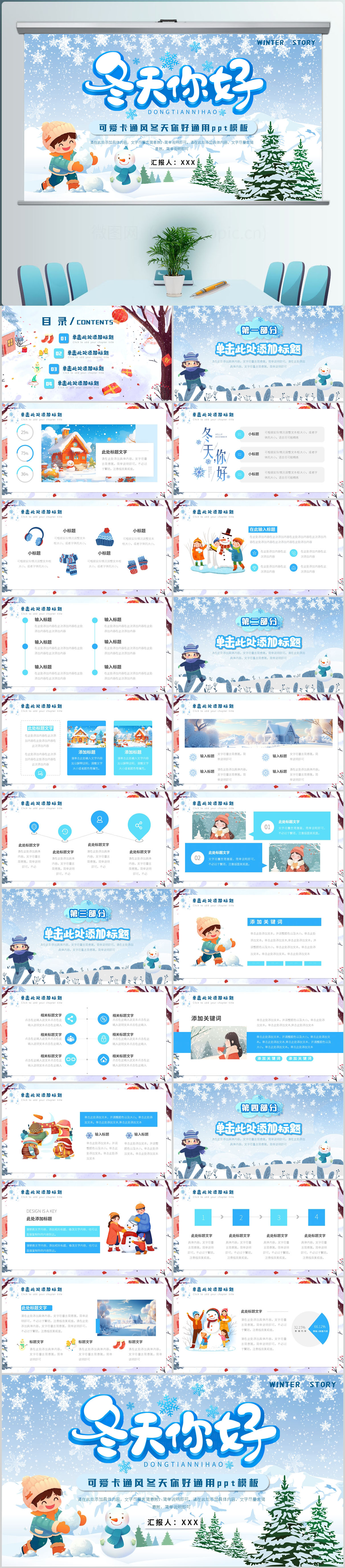可爱卡通风冬天你好通用ppt模板设计