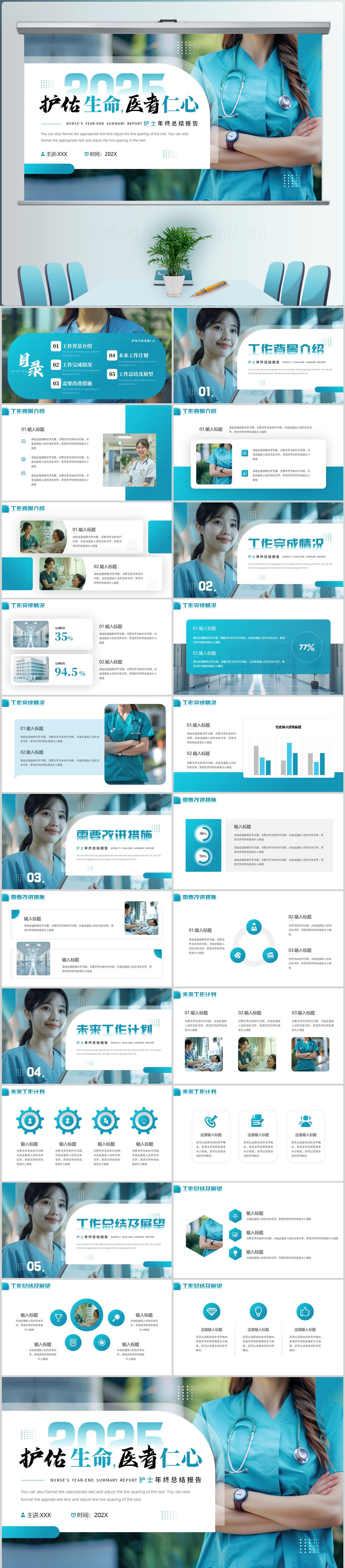简约医药医院医生护士工作总结ppt模板设计
