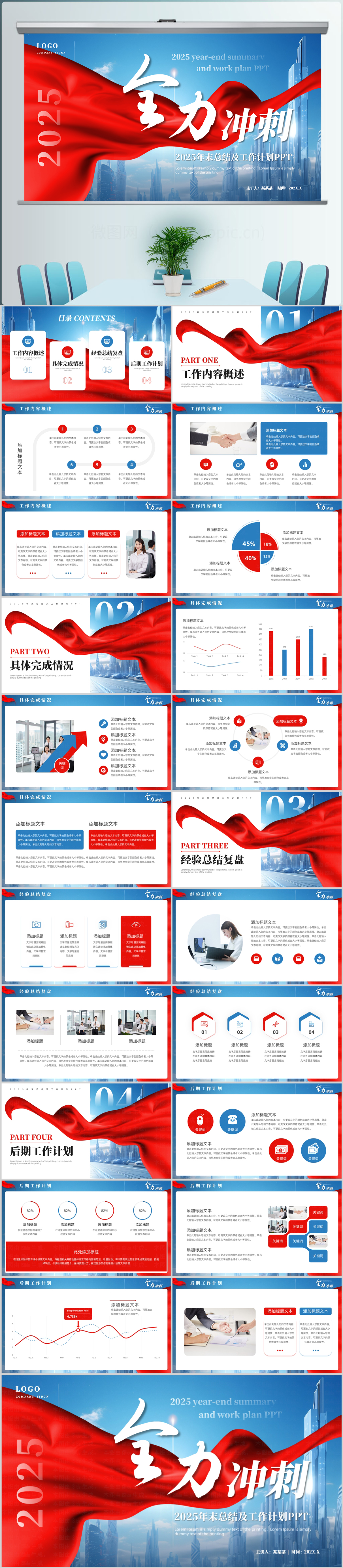 2025年全力以赴年终工作总结及工作计划模板PPT模板
