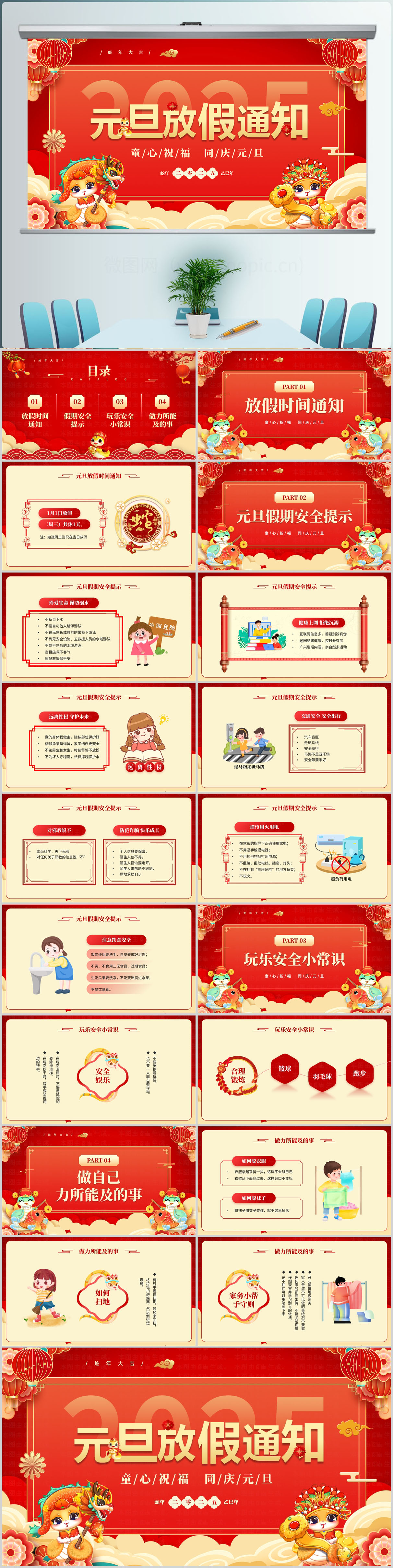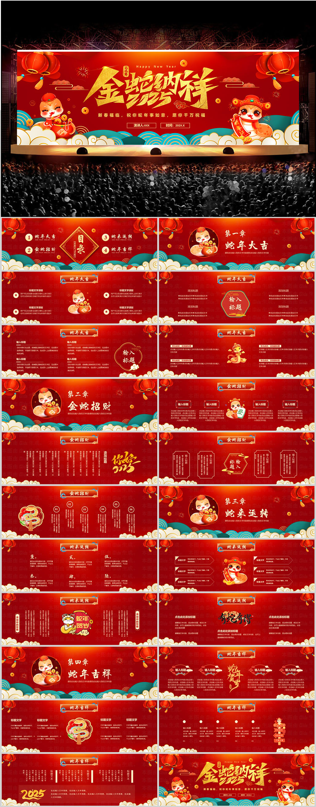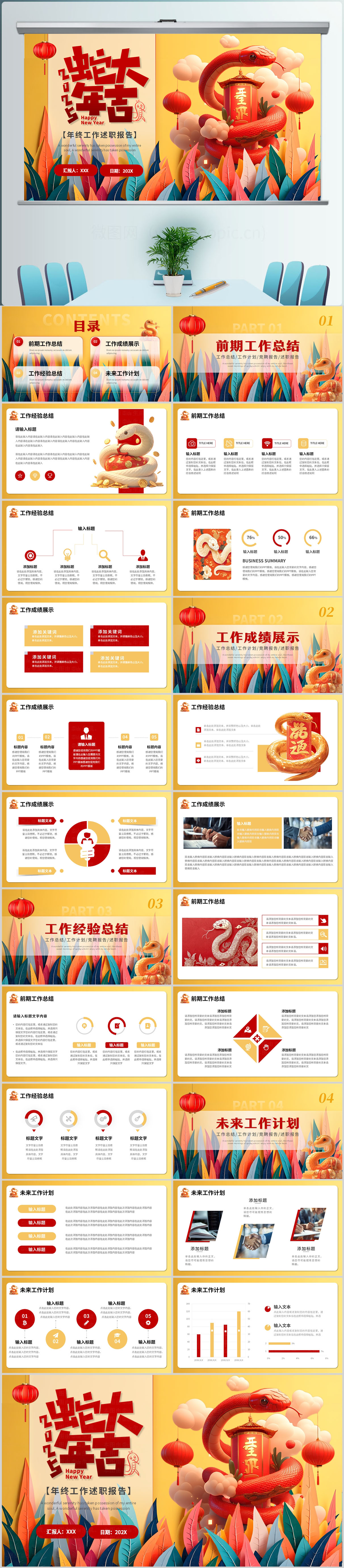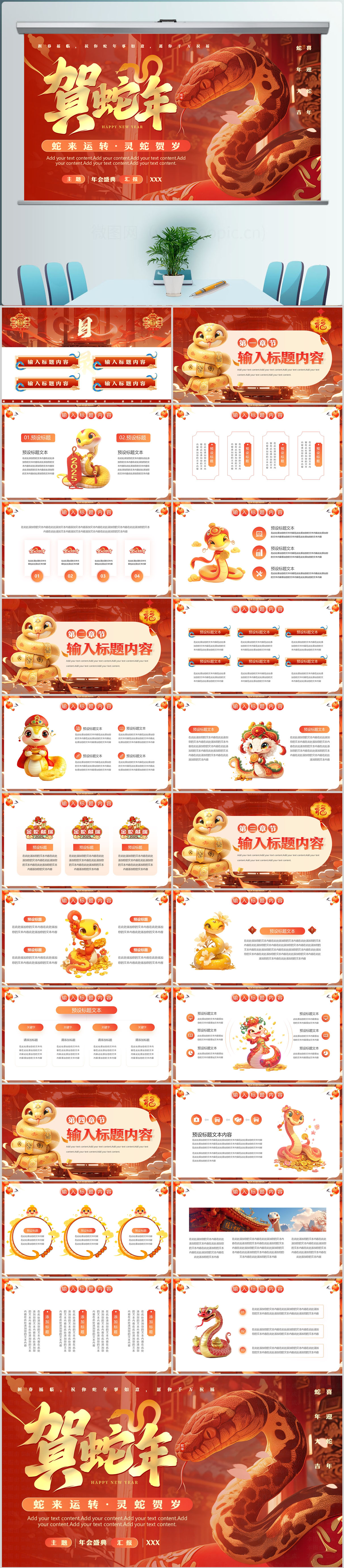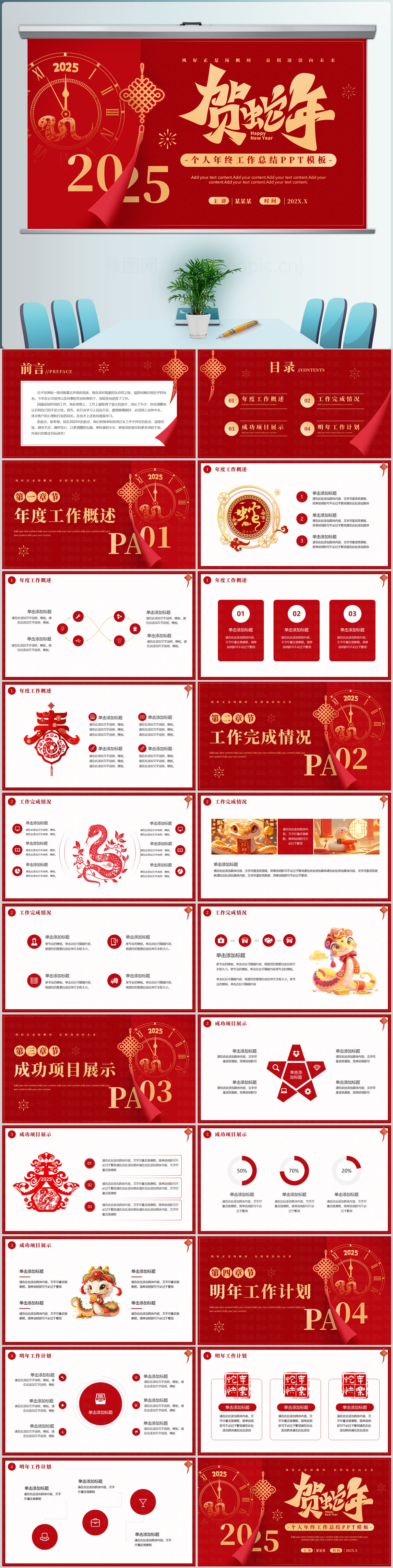 2025蛇年贺新春新年工作计划PPT模板设计