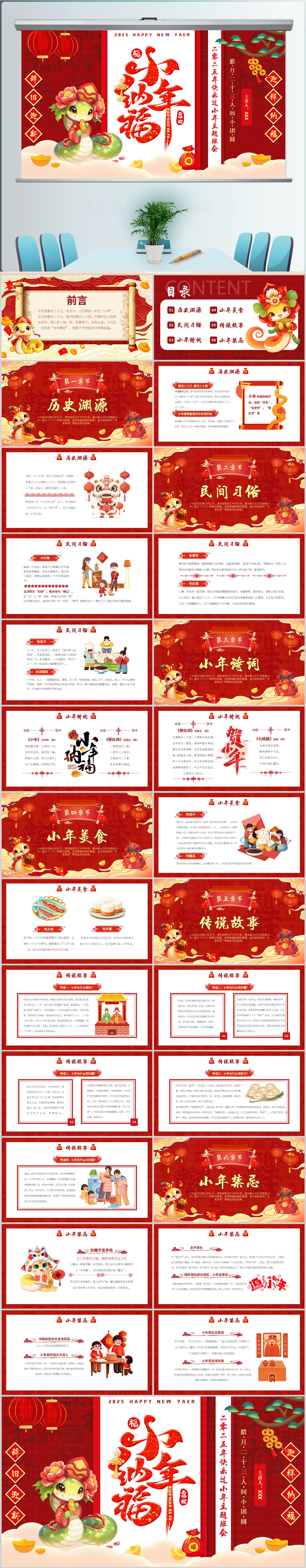 中国风小年纳福主题班会PPT模板设计