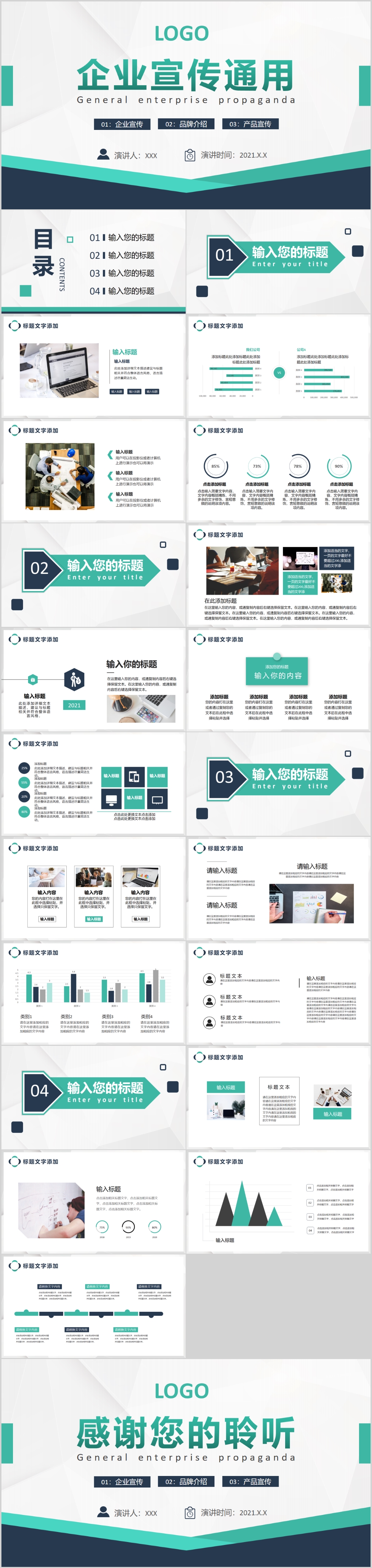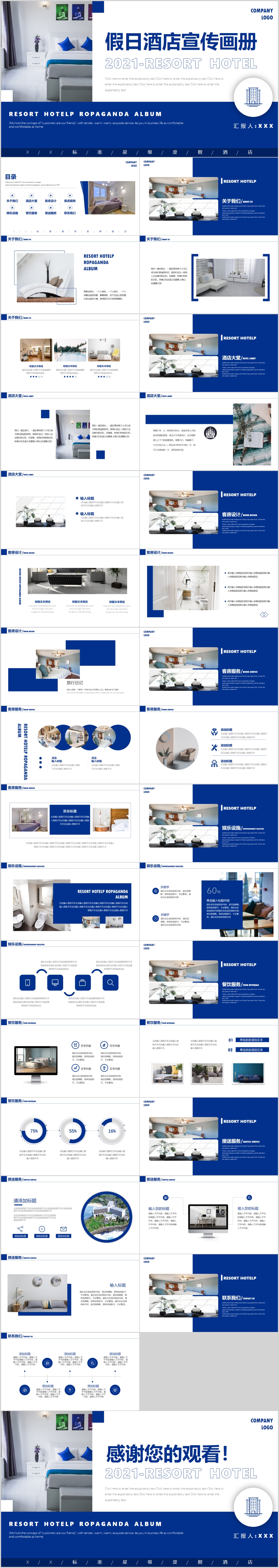 蓝色小清新简约酒店宣传画册动态PPT模板