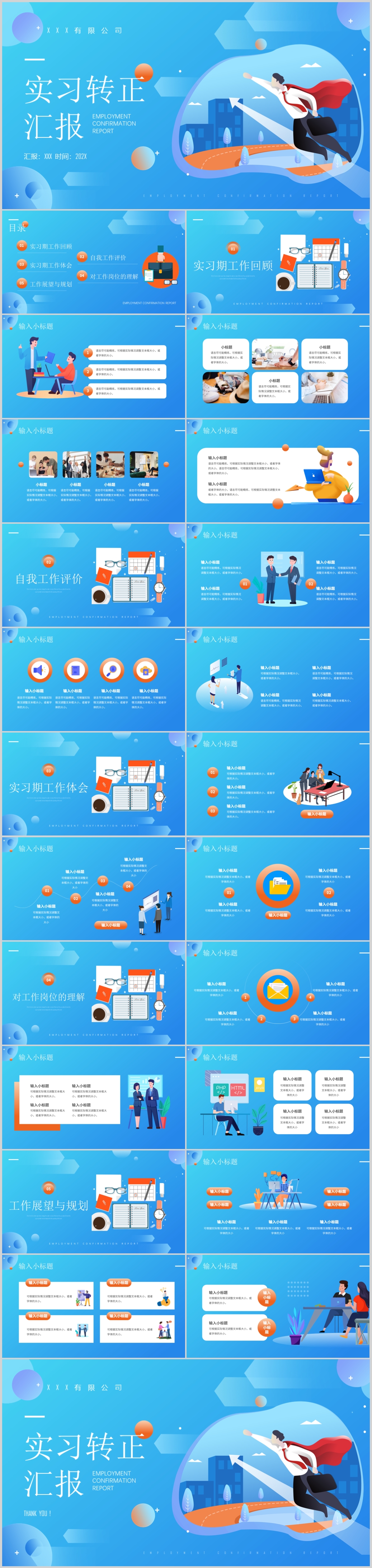 蓝色企业员工实习转正汇报工作总结述职ppt模板