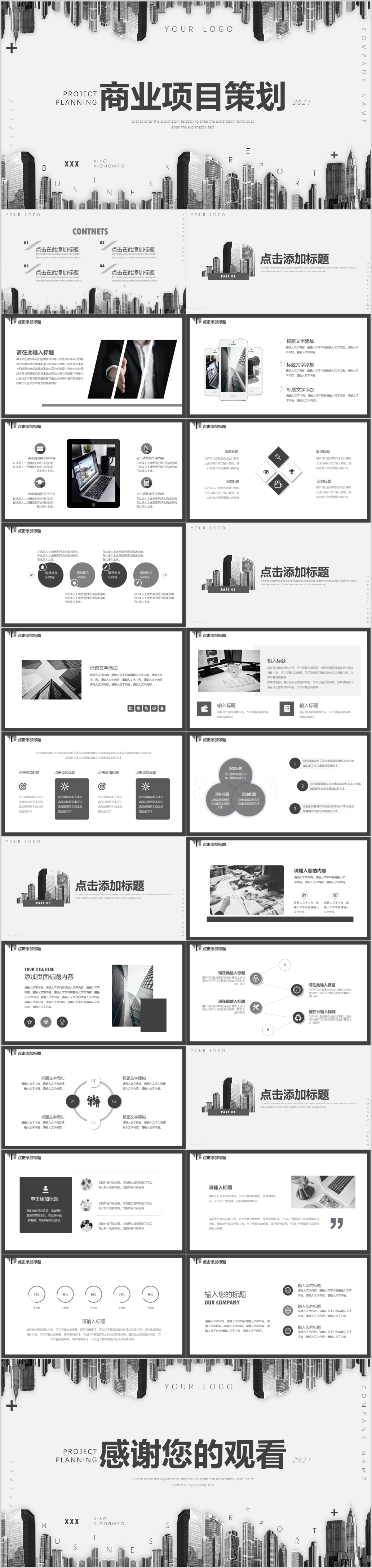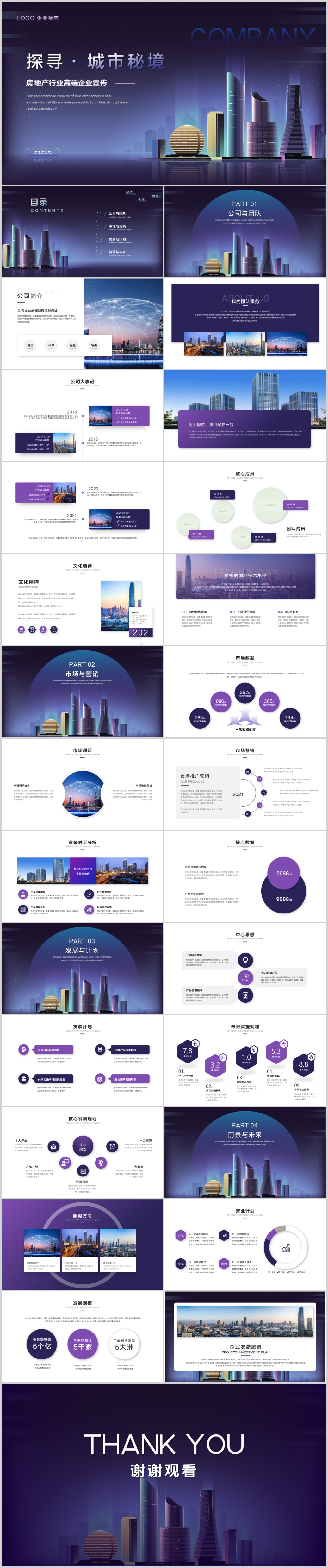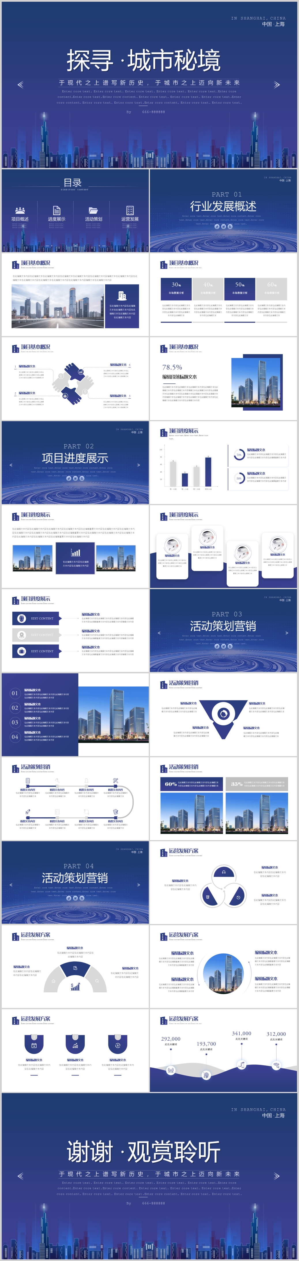 蓝色指挥城市建筑设计建筑规划室内设计城市规划房地产PPT模板