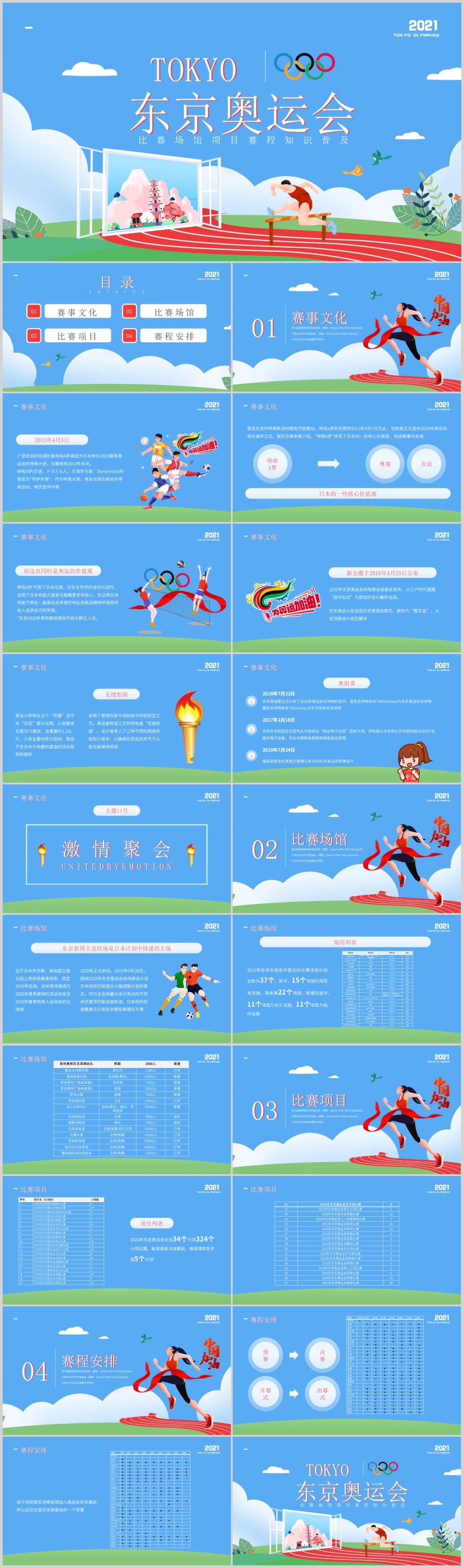 蓝色体育竞技为奥运喝彩东京奥运会比赛介绍PPT模板