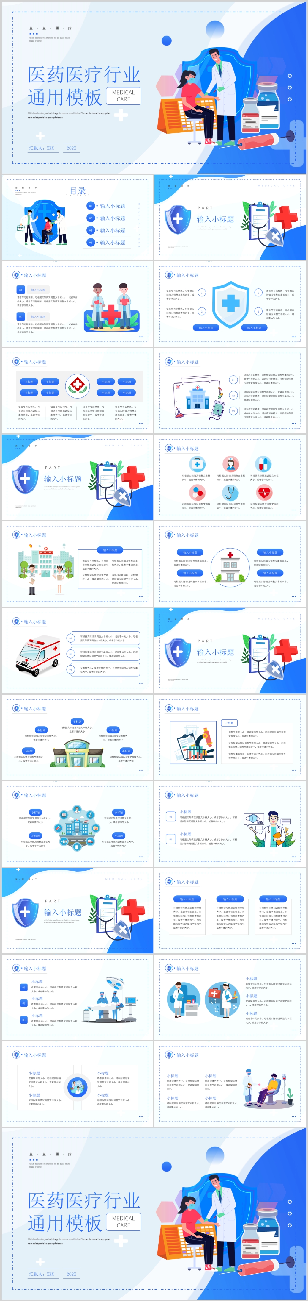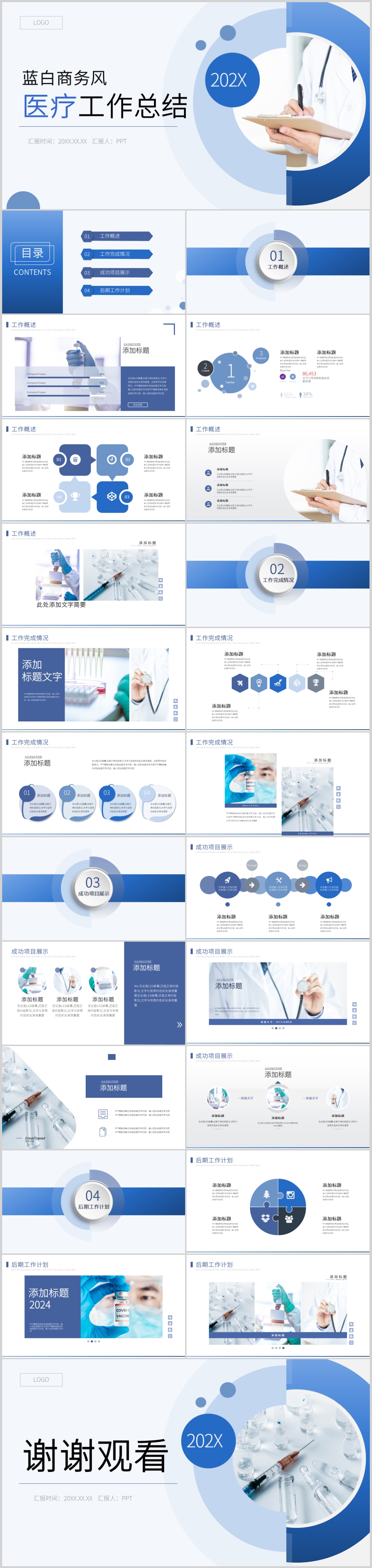 蓝色精美医院宣传医学医疗医生类通用工作总结PPT模板