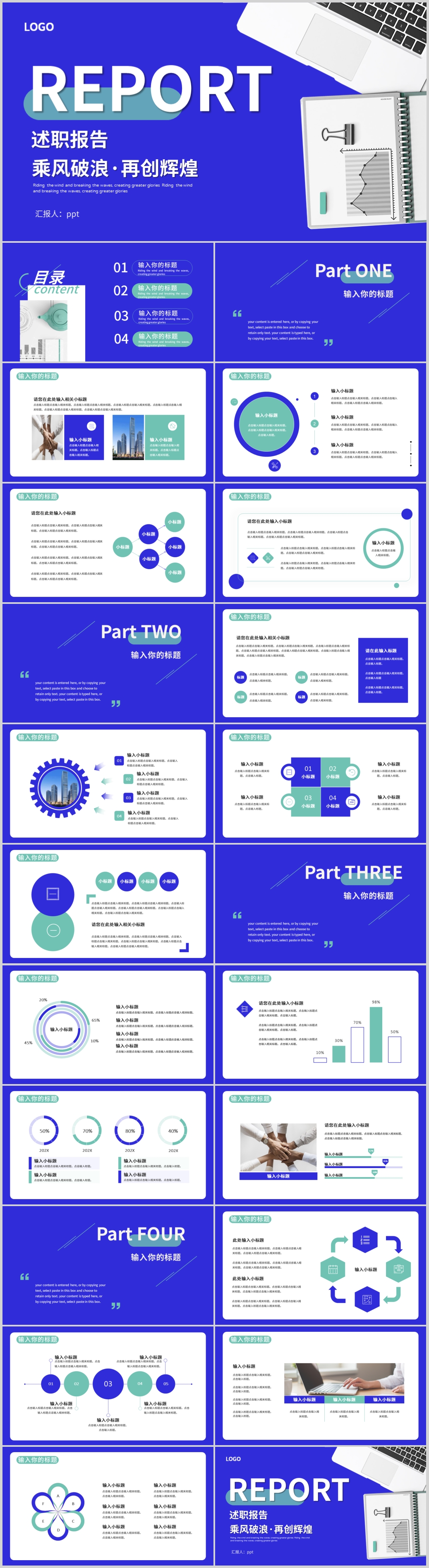 蓝色乘风破浪年终总结工作计划述职报告PPT模板
