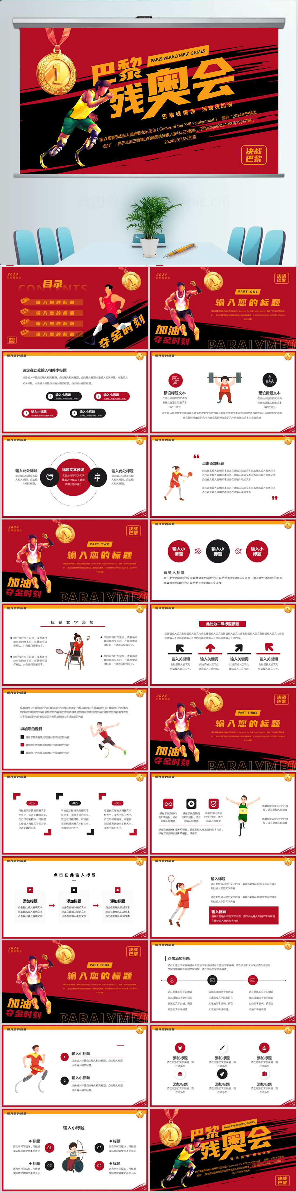 2024巴黎残奥会活动通用PPT模板设计