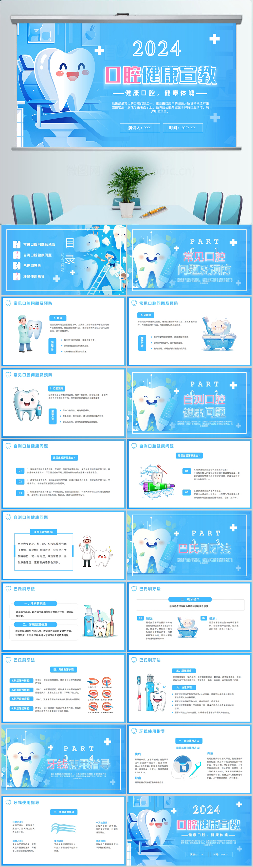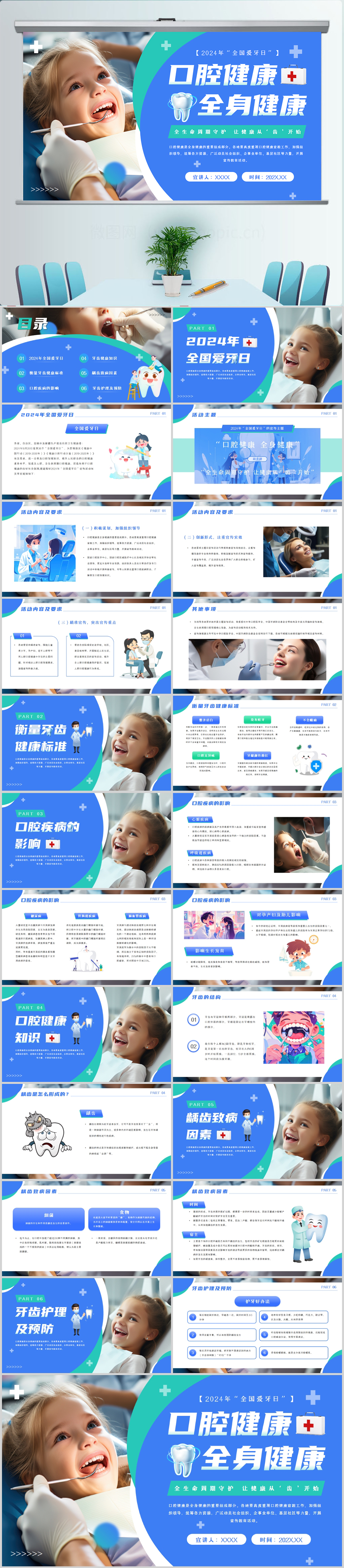 可爱卡通插画风全国爱牙日PPT模板设计