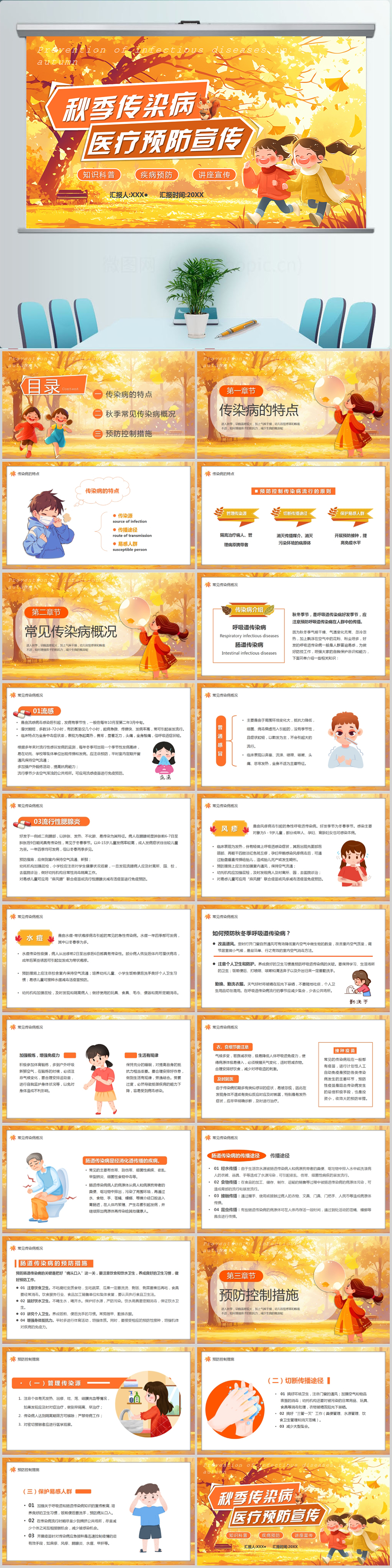 秋季传染病预防PPT模板设计