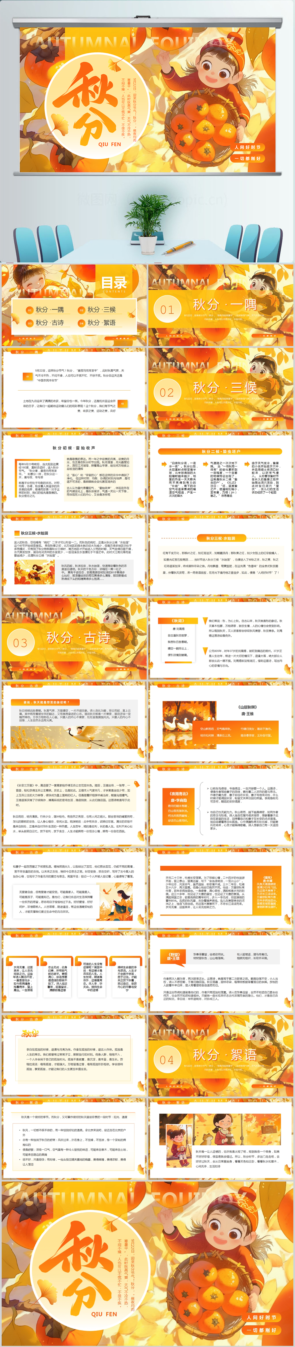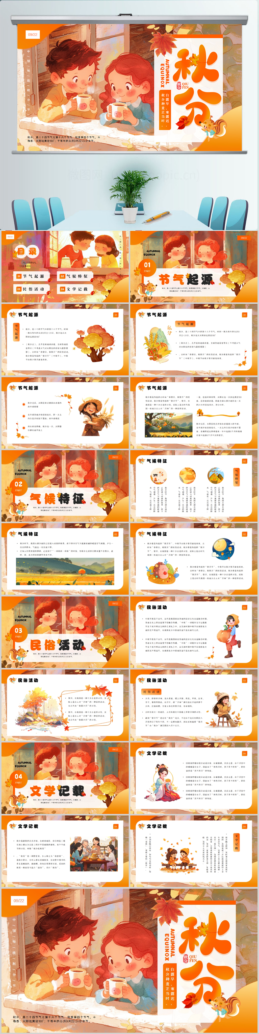 二十四节气秋分介绍PPT模板设计