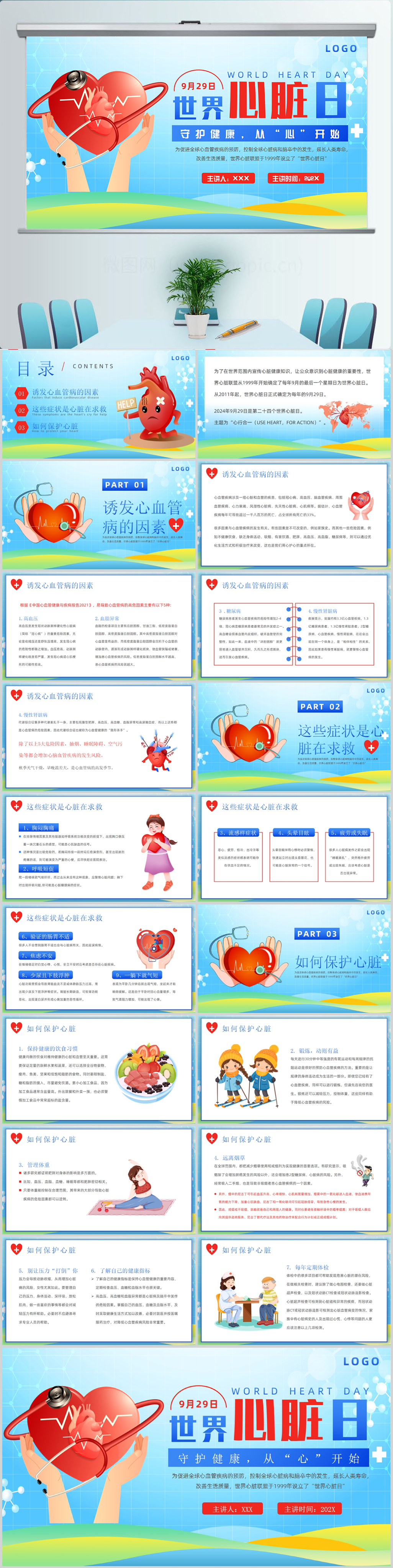 简约风世界心脏日科普PPT模板设计