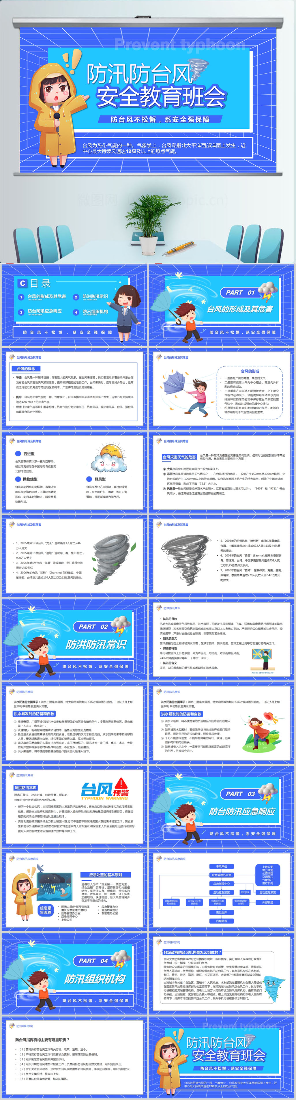 校园安全教育防灾减灾防台风相关知识主题班会培训PPT模版