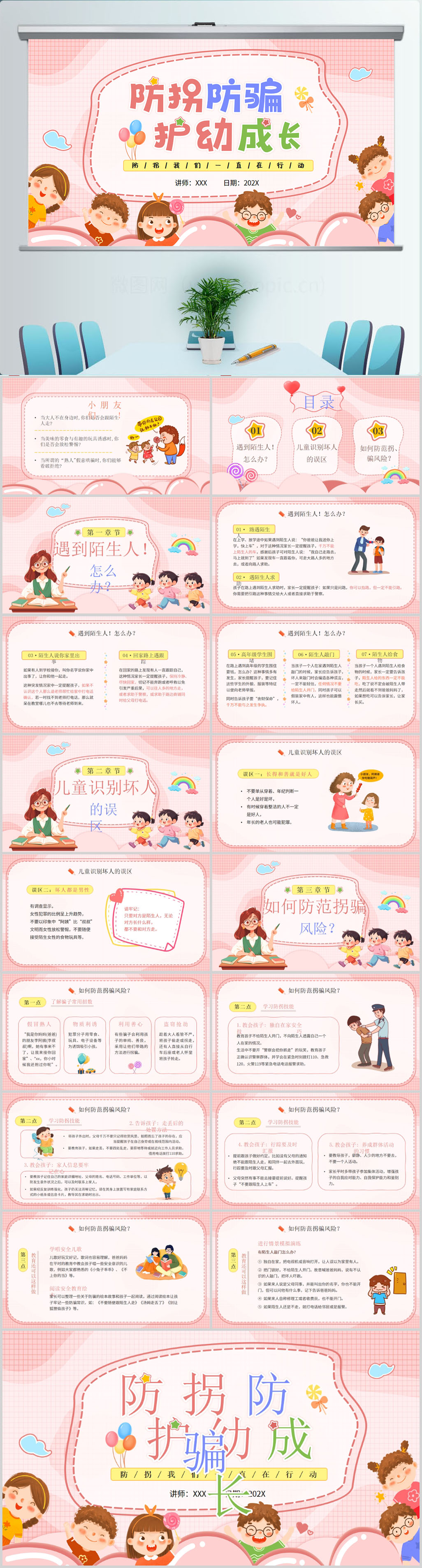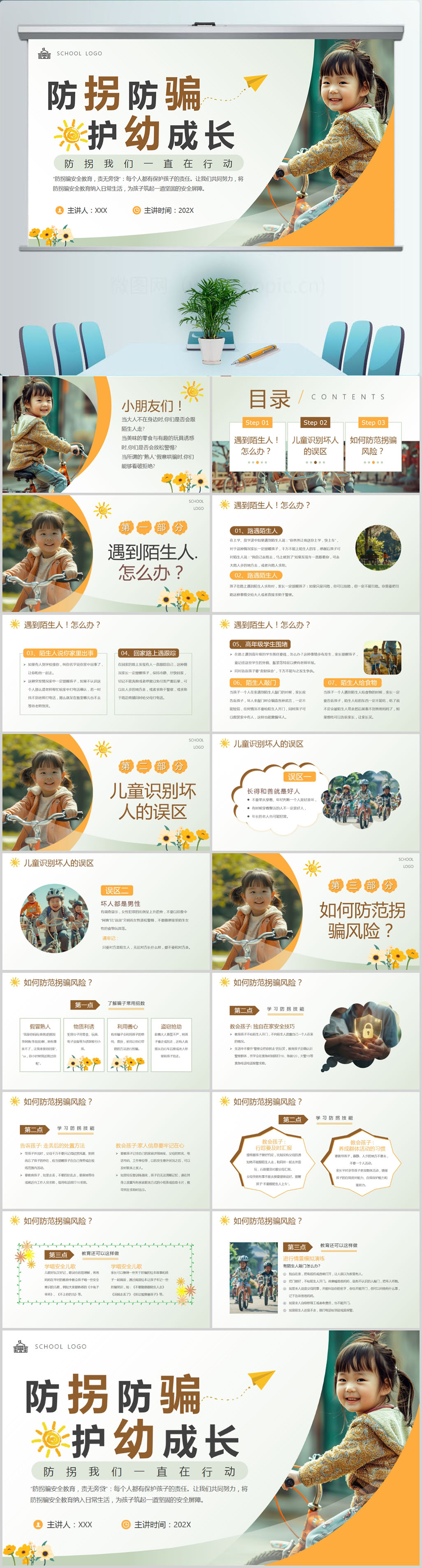 幼儿园防拐防骗安全防范知识PPT模版设计