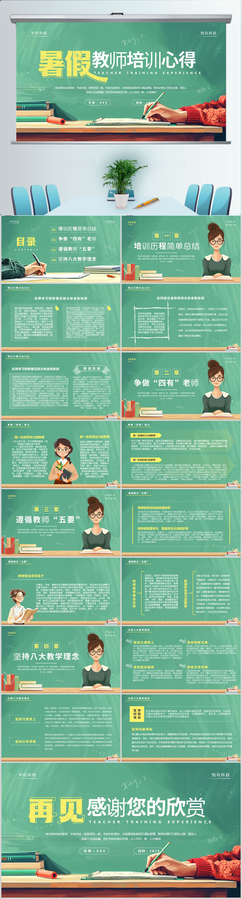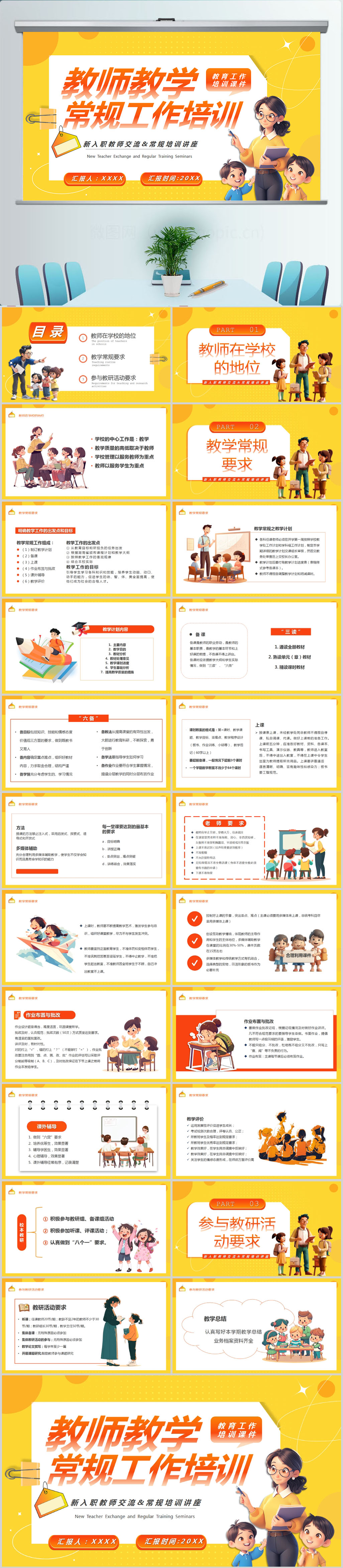 卡通教师教育教学培训工作总结汇报动态PPT模板设计