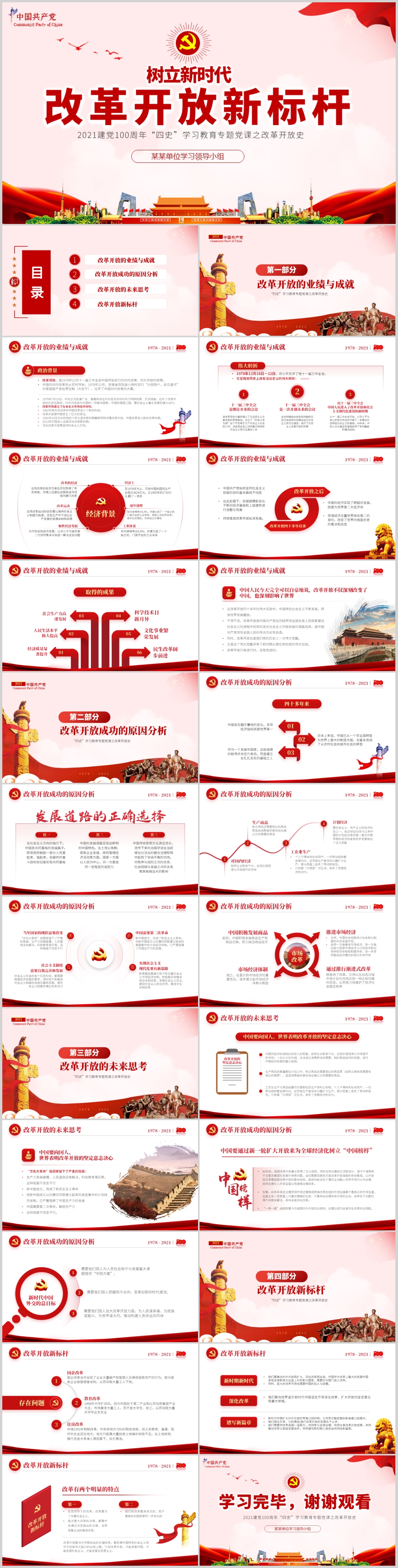 2021建党100周年“四史”学习教育专题党课之改革开放史党课PPT模板