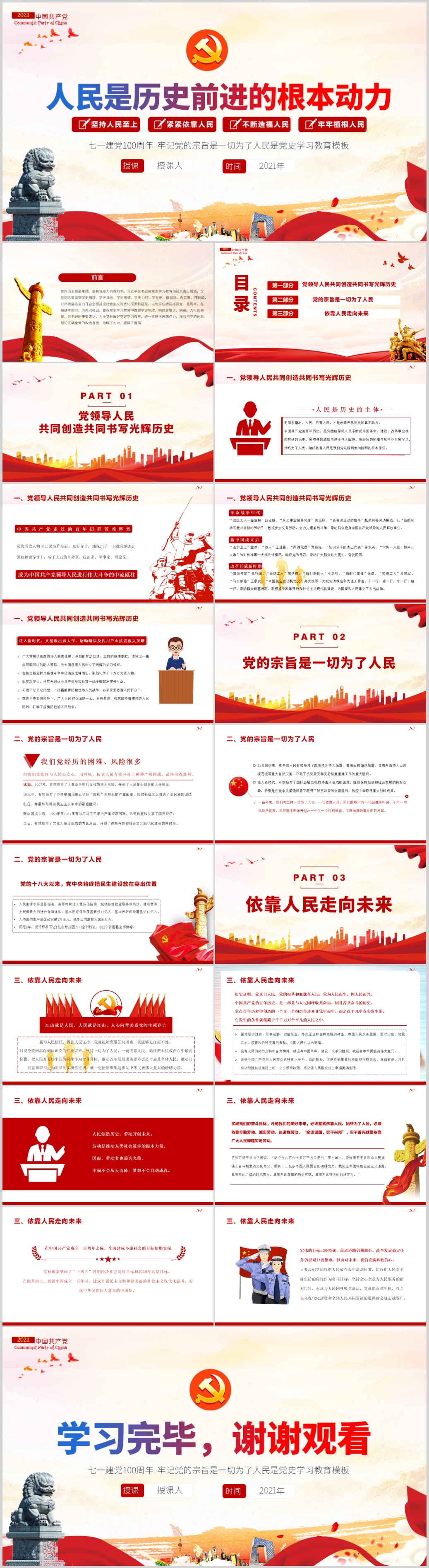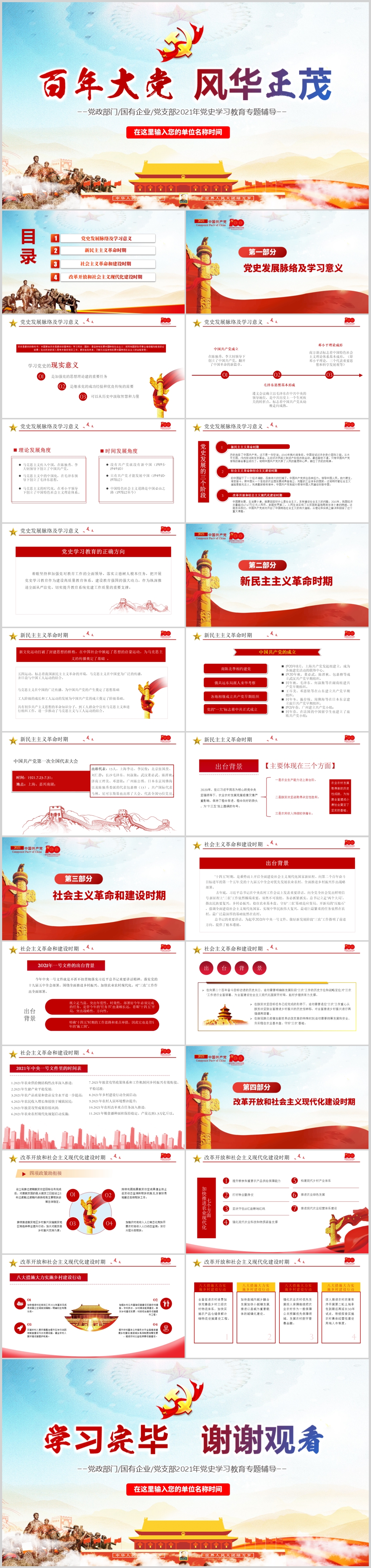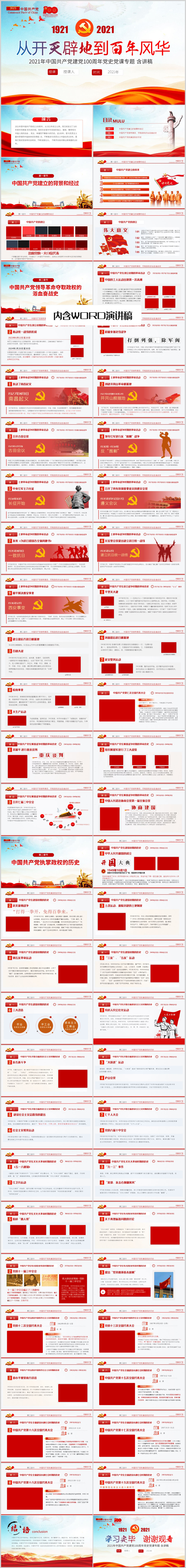 七一建党100周年从开天辟地到百年风华党史教育专题课件PPT模板(内含WORD演讲