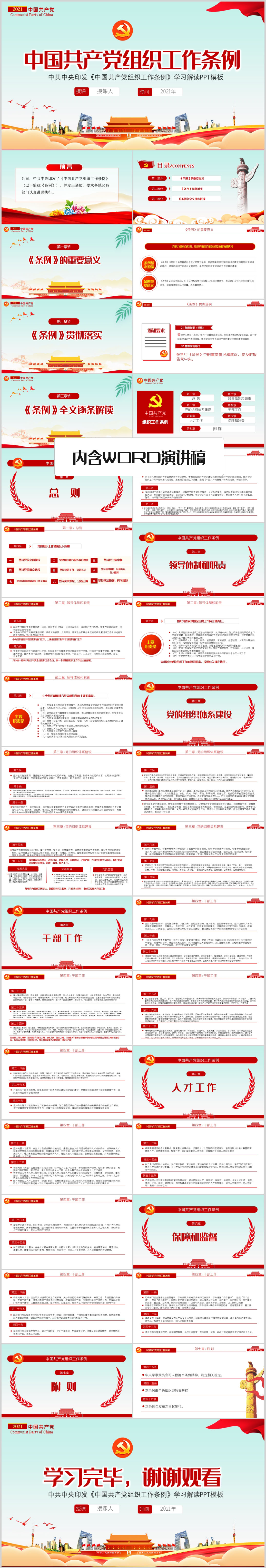 2021年组织工作条例学习解读基层党组织党课PPT模板(内含WORD演讲稿)