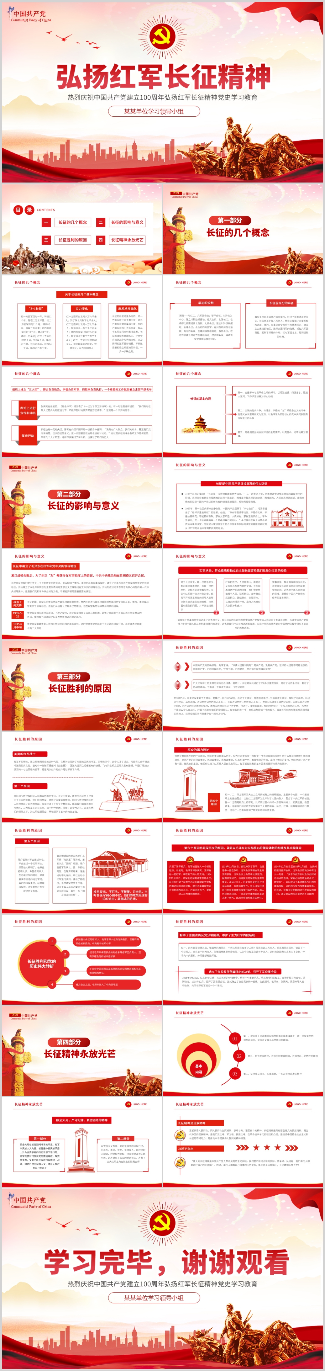 纪念红军长征胜利85周年弘扬伟大的长征精神党史党课PPT模板