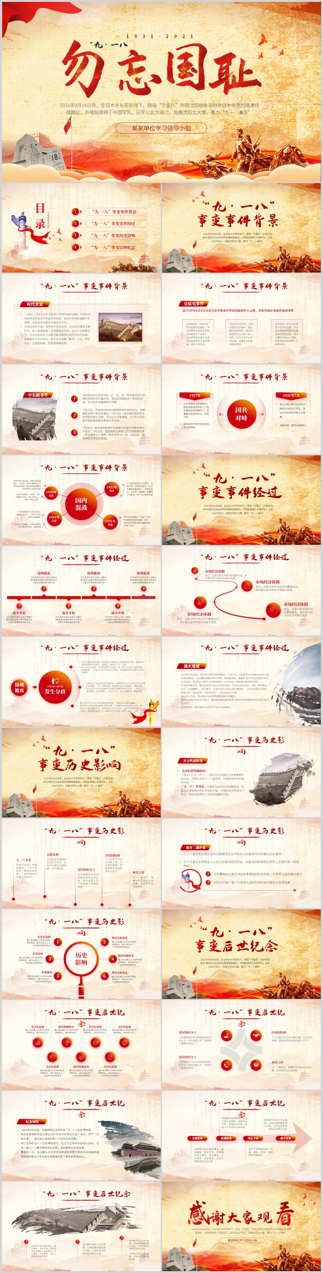 勿忘国耻九一八事变纪念日党史学习教育党课PPT模板