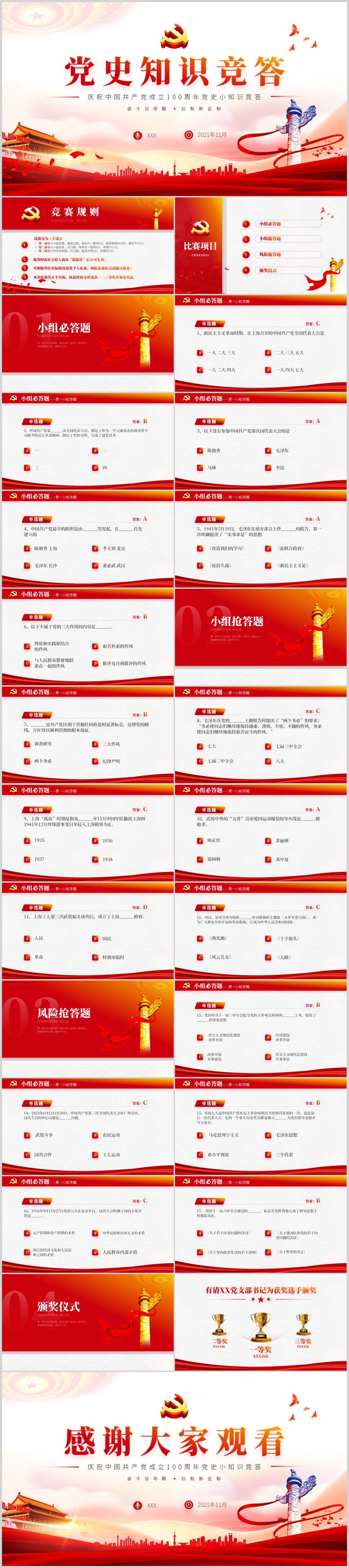 党史知识竞赛模板七一建党活动专题党课PPT模板